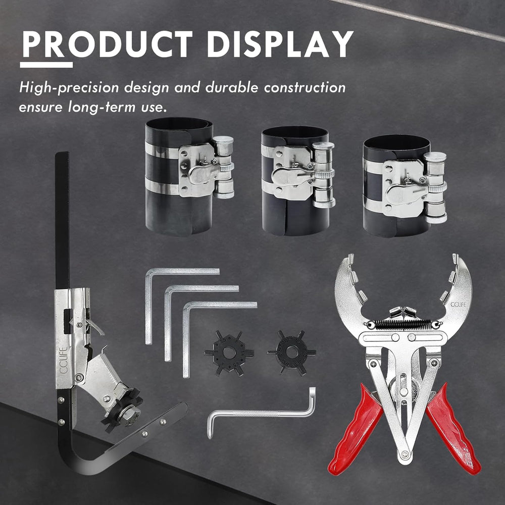 - enthält wichtige Werkzeuge zur:Reinigung von Kolbenringnuten; Mntage von Kolbenringen; Vorspannen von Kolbenringen bei Montage der Kolbenr