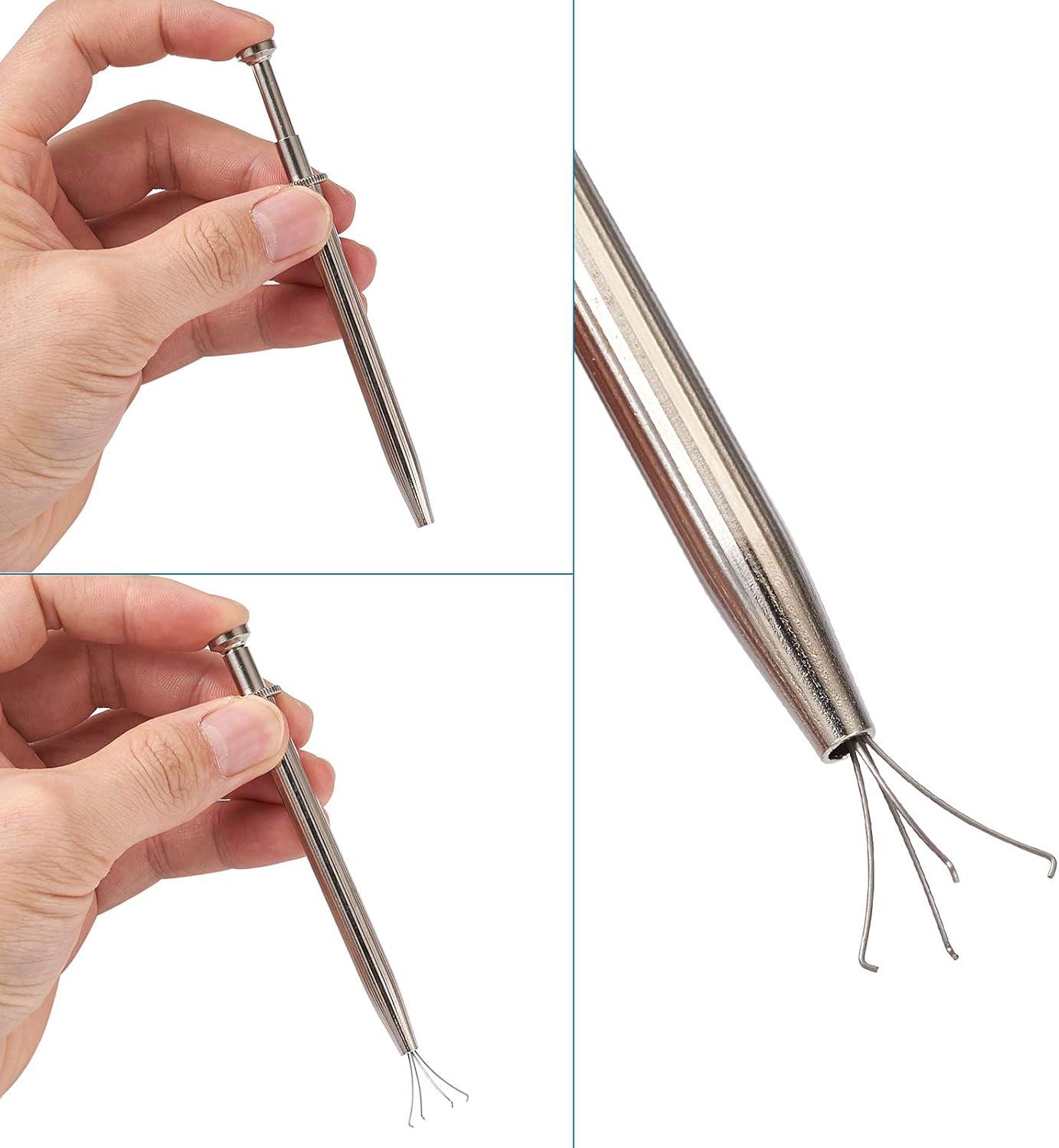 - Lieferumfang: 1 x manuelle Perlenniet-Befestigungsmaschine, 5 x Presskunststoffköpfe, 1 x Legierungs-Inbusschlüssel, 1 x Edelstahl-Pinzette, 1 x Edelstahl-Pinzette, 100 g Edelstahl-4-Krallen-Nägel.