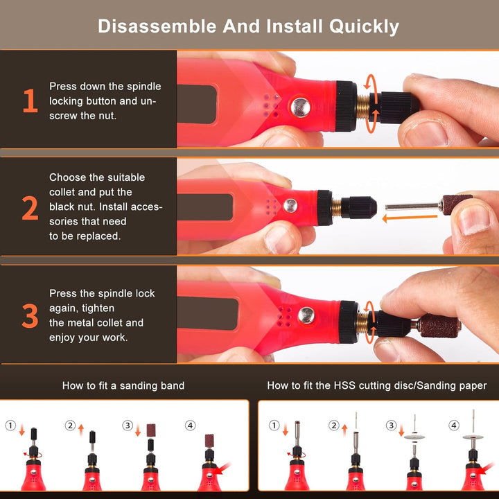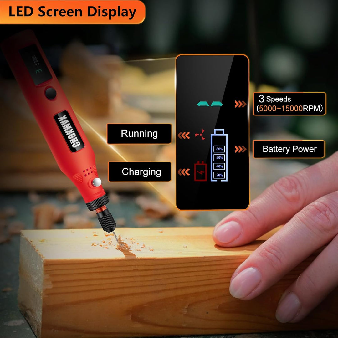 - Erobern Sie jede kleine Heimwerkeraufgabe ganz einfach: Mit 3 einstellbaren Geschwindigkeiten (5000/10000/15000 U/min) ermöglicht Ihnen unser Mini-Drehwerkzeug mühelos jedes kleine DIY-Projekt zu bewältigen. Auch wenn Sie ein Anfänger sind, können