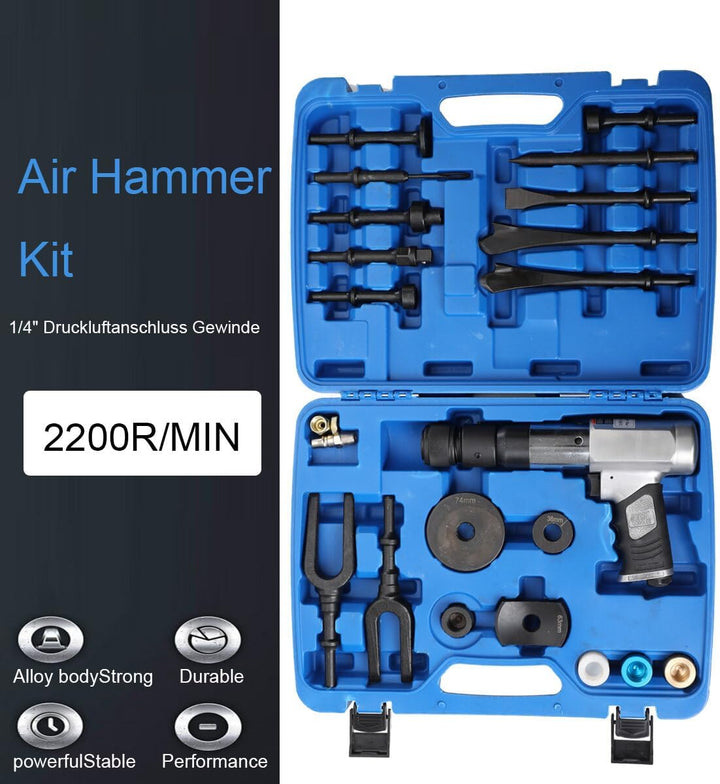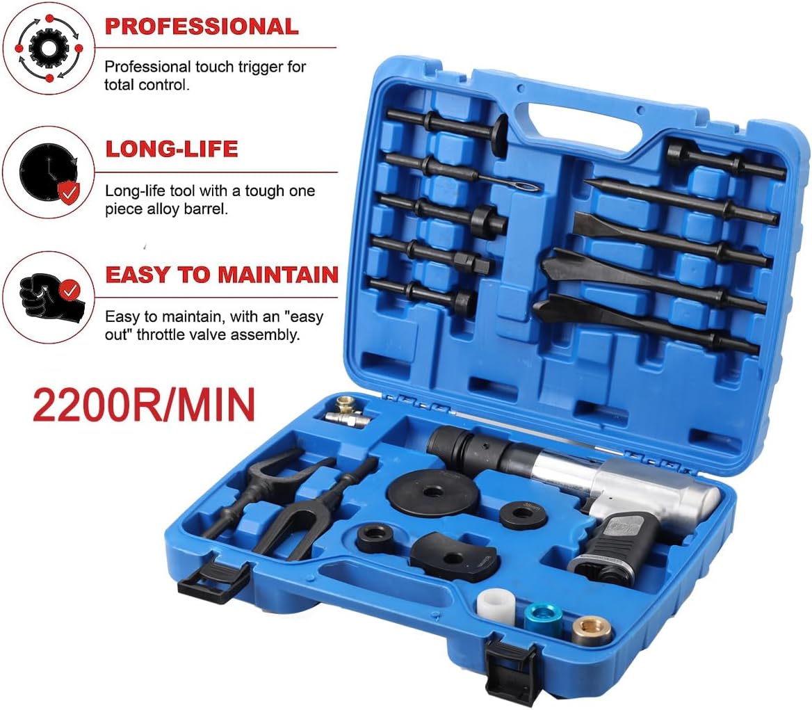 - 【HOHE QUALITÄT ZUBEHÖR】Zusätzlich zum Lufthammer-Werkzeug ist unser Lufthammer-Kit mit 15-Sets von Kits für verschiedene Arbeiten ausgestattet. Diese Luftschaufelzubehör sind alle aus Chrom-Molybdän-Stahl durch Abschrecken Prozess hergestellt,