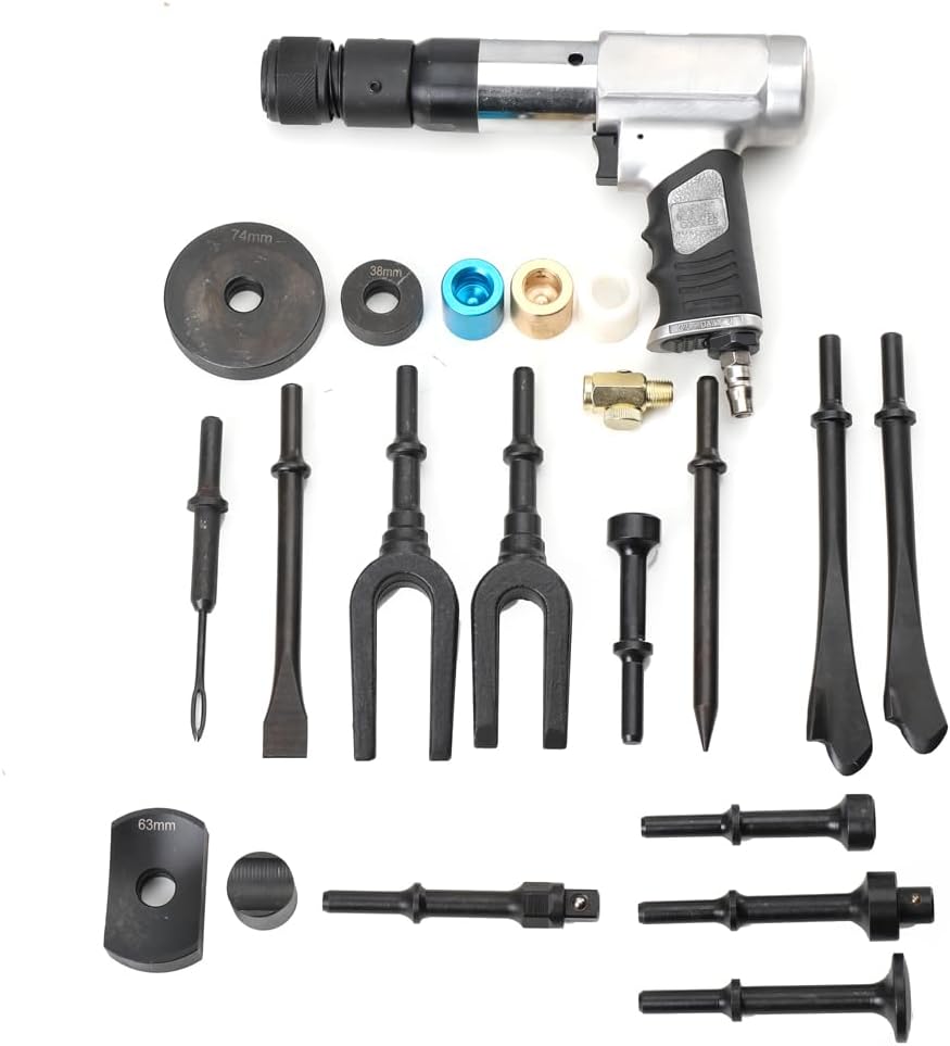 - 【WEITER ANWENDUNGSBEREICH 】- Unser Lufthammer-Werkzeugsatz ist weit verbreitet in Automobilblech, Hämmern Reifen, Reinigen von Schweissschlacke oder Betonschlacke, Nieten von Aluminiumlegierungstüren und -fenstern, Entgraten von grossen, mittleren