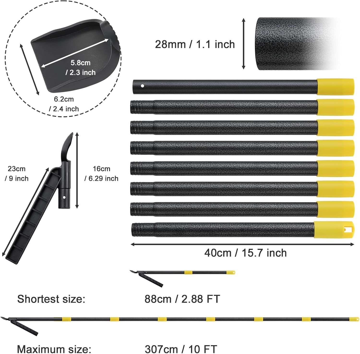 - Verstellbare Länge: Der Dachrinnenlöffel besteht aus 8 Stangen und lässt sich von 85 bis 304 cm anpassen, passend für verschiedene Dachhöhen