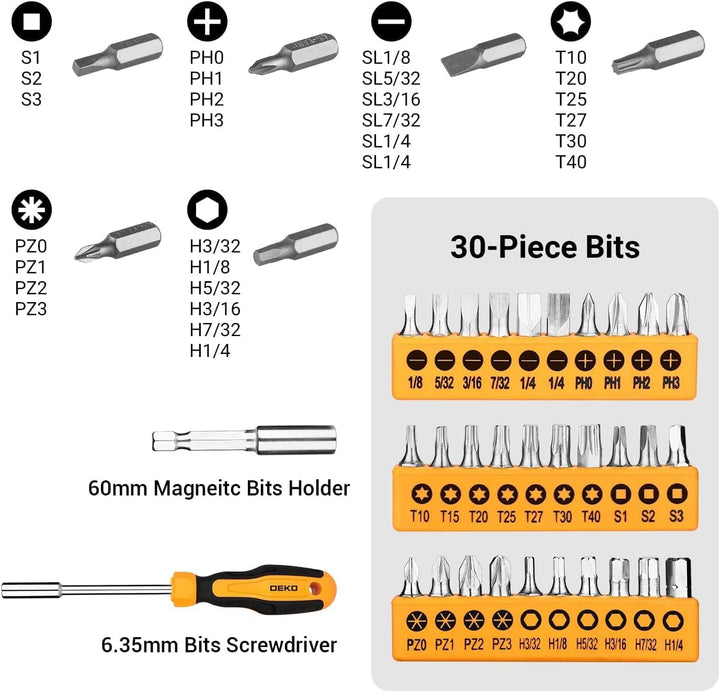 - Vielseitiges Heim-Set: 30 Bits und ein kompletter Kastenverschluss sorgen auch für eine reichhaltigere Erfahrung. Dies ist ein perfekter Werkzeugkasten für Studenten, unverzichtbare Heimwerker, Haushaltsreparatur, grundlegende Wartung und Holzarbeiten