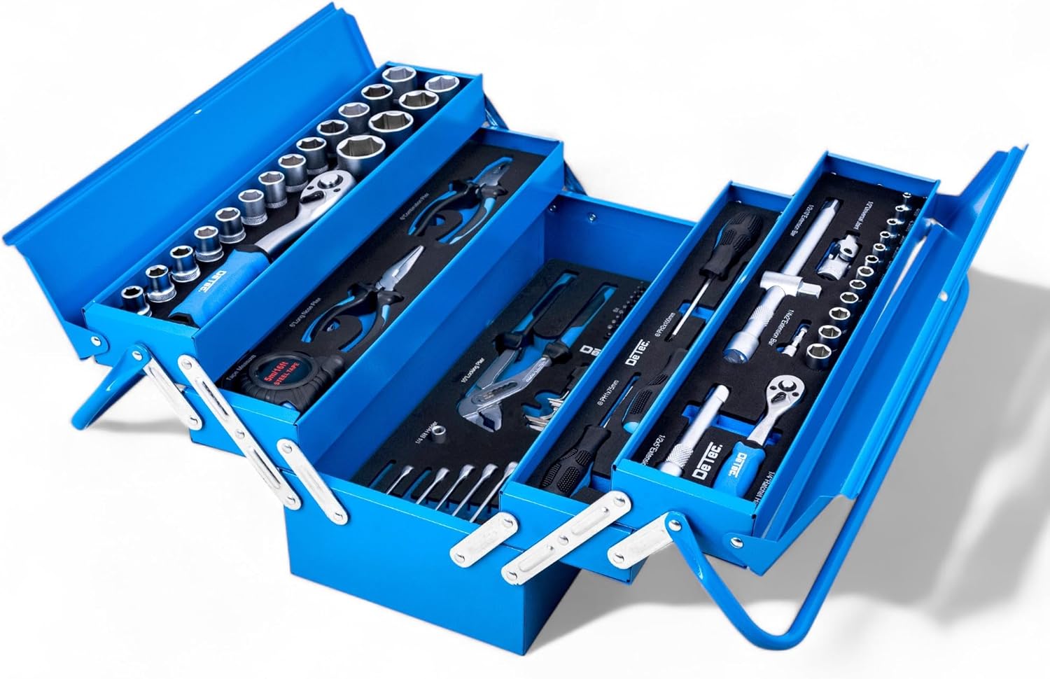 - ✔Robuste Schaumstoffeinleger sorgen für Ordnung und schützen das Werkzeug, sodass der blaue Werkzeugkasten stets gut organisiert ist