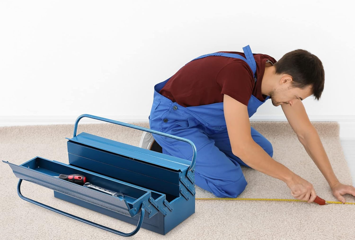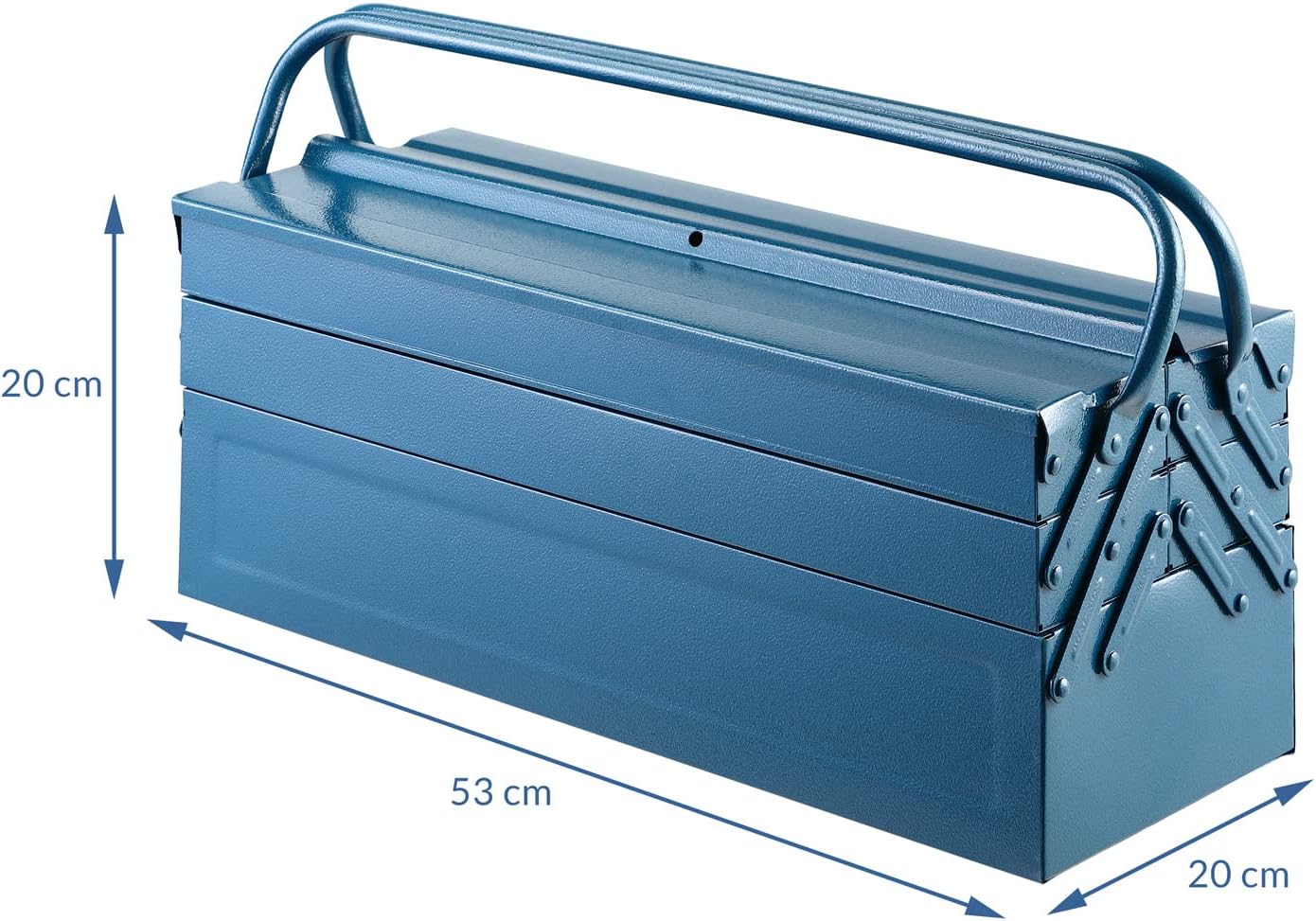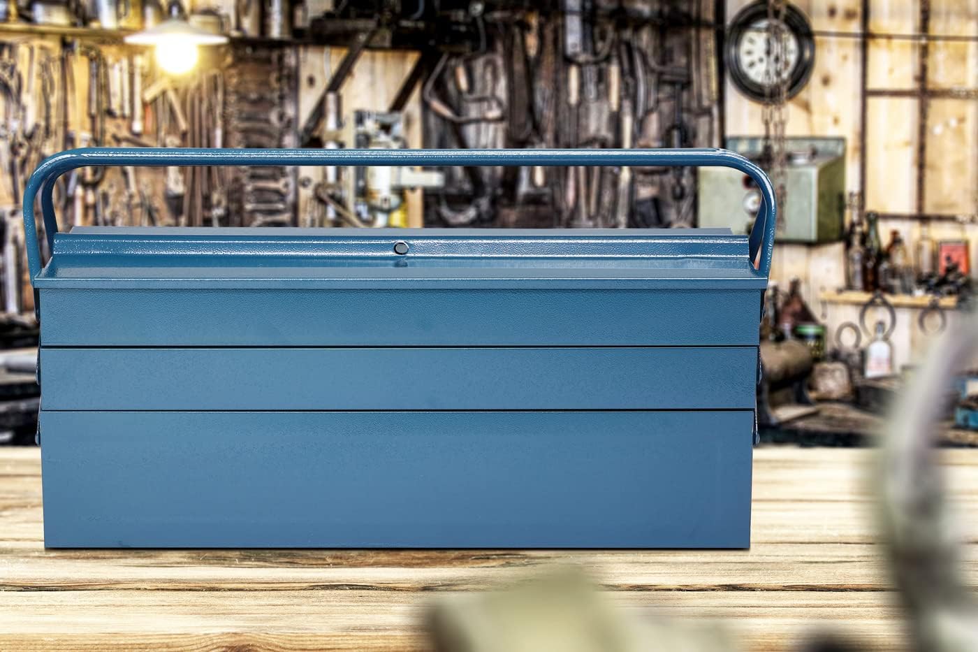 - ROBUST & STABIL: Die Werkzeugkiste ist aus pulverbeschichtetem Stahl hergestellt und ist somit sehr robust und perfekt für den Einsatz in Garagen, Werkstätten und Baustellen. Er ist beständig gegen Öle und Chemikalien.