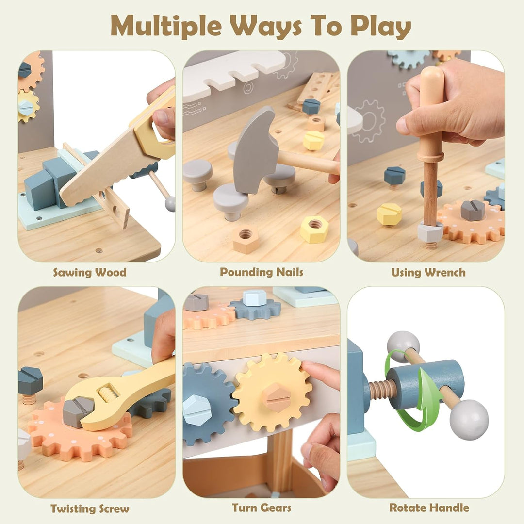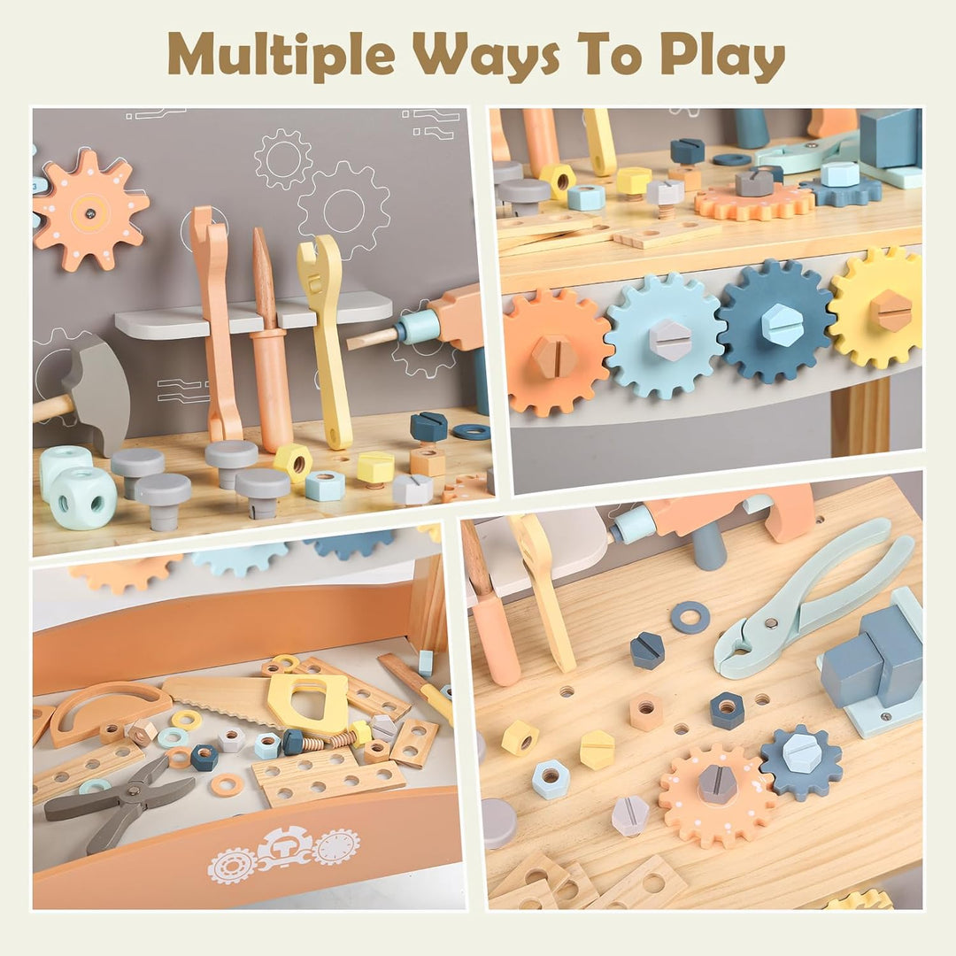 - Bildend und Unterhaltsam: Ob alleine oder mit Freunden gespielt, fördert dieses Kinder-Holzwerkbankspielzeug Teamarbeit, Problemlösungsfähigkeiten und fantasievolles Denken. Als perfektes Geschenk weihnachtsgeschenke für angehende Baumeister