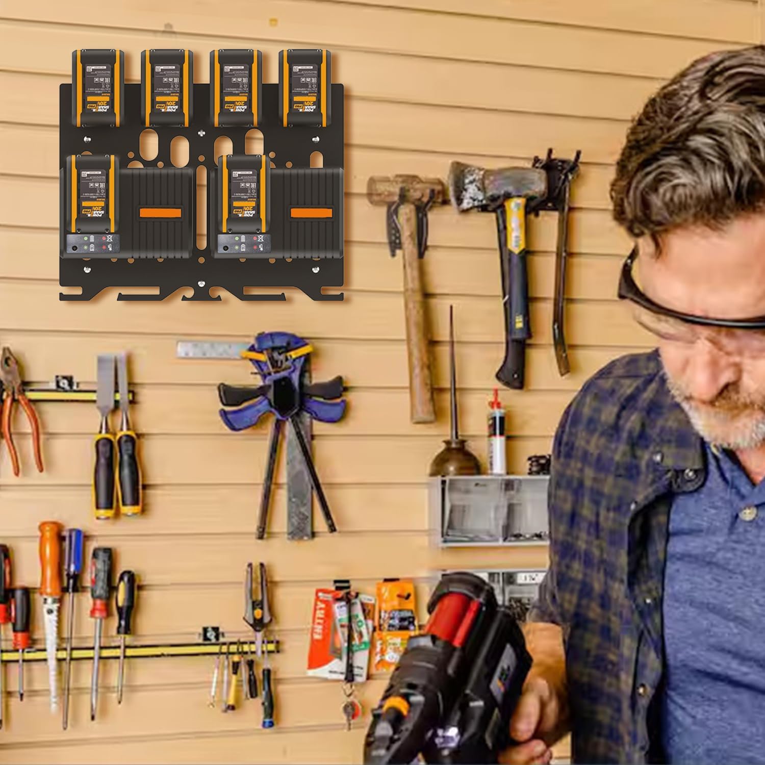 - 【Spezielle Verwendungsmöglichkeiten】: Bietet Platz für bis zu 4 Worx 20-V-Akkus. Sie können Ihre Worx-Ladegeräte folgendermassen installieren: 2x WA3867-Ladegeräte; 2x WA3880/WA3860-Ladegeräte; 1x WA3867-Ladegerät und 1x