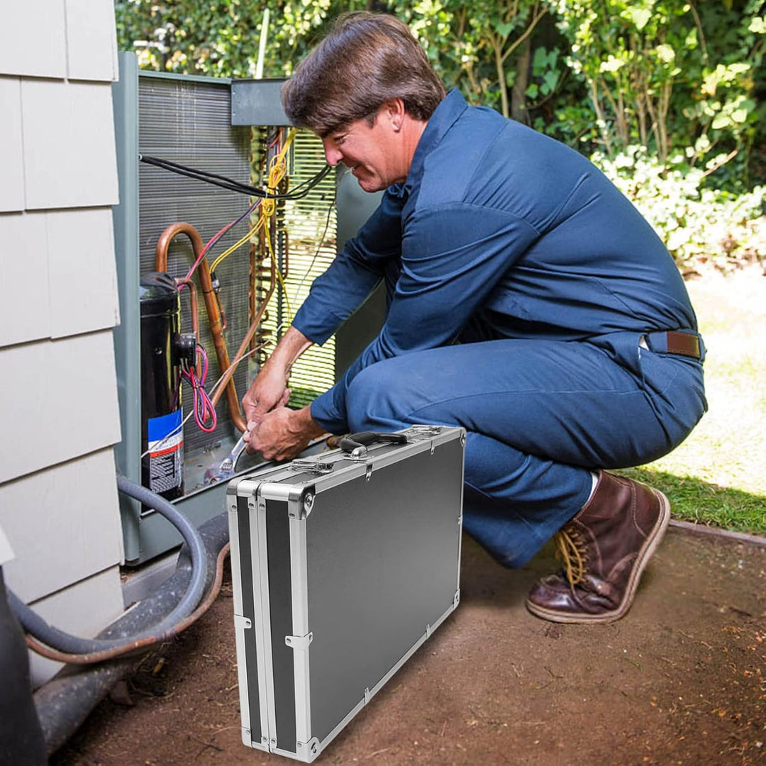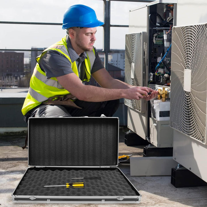 - ★【Doppelter Schutz】-- Der Aluminium- Werkzeugkoffer hat dicken Schaumstoff, um Ihre Wertsachen vor Beschädigungen zu schützen, die zweite Schaumstoffschicht schützt Werkzeuge vor Stössen.