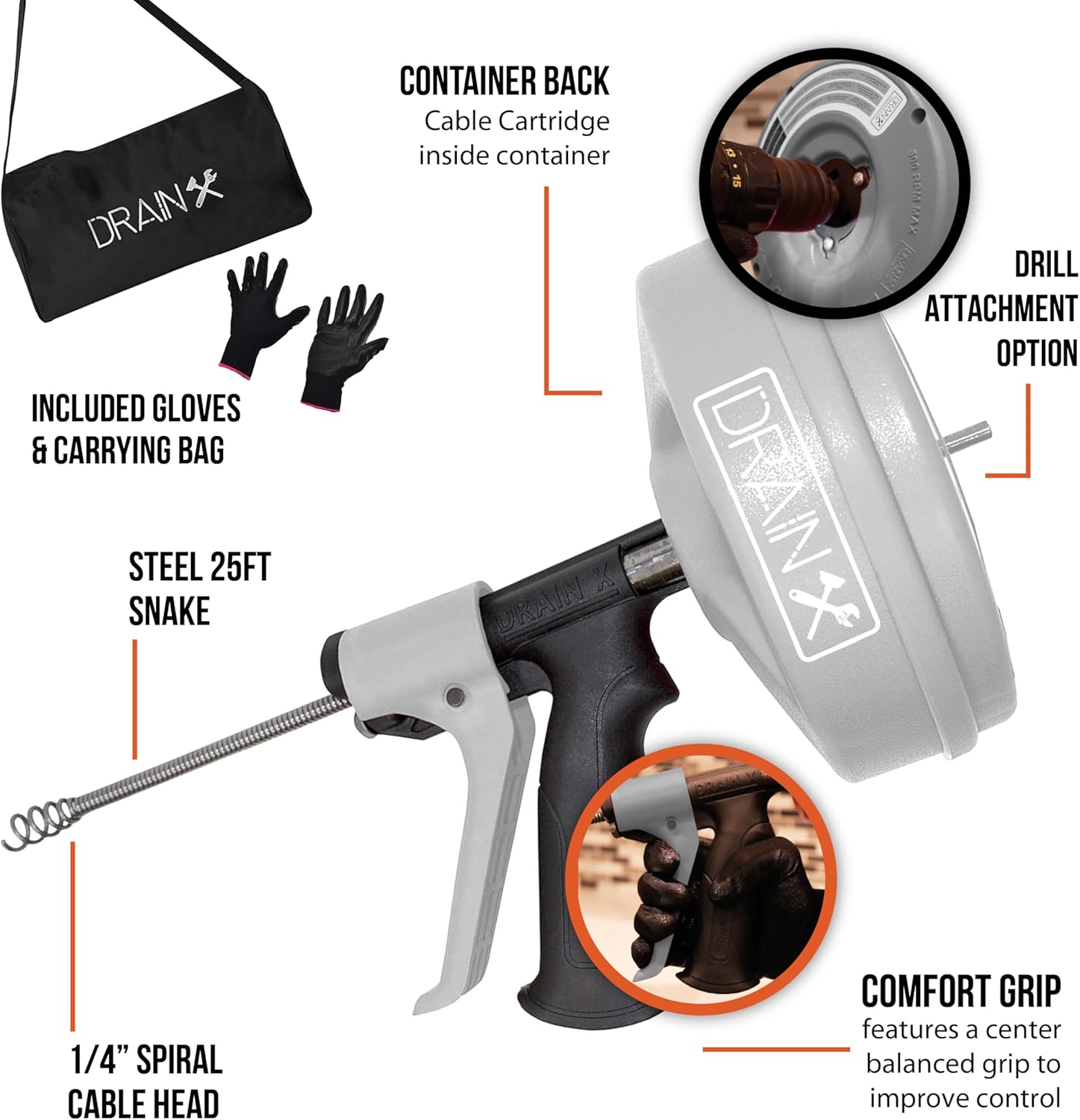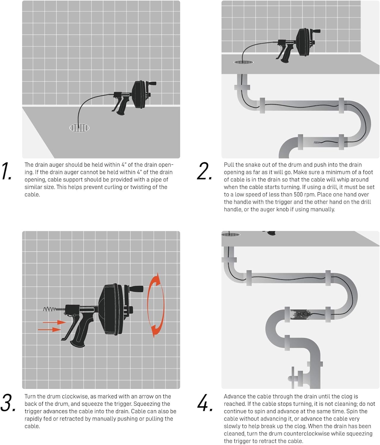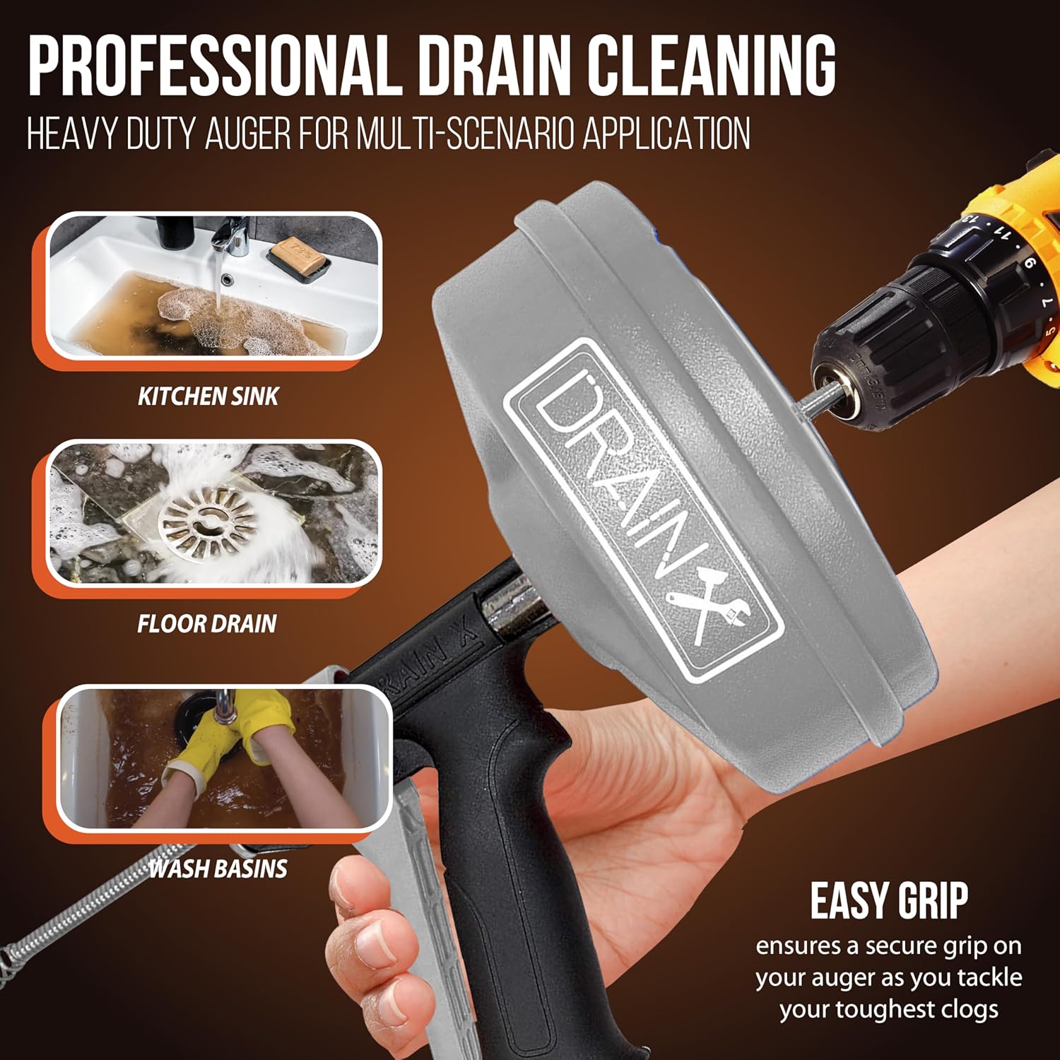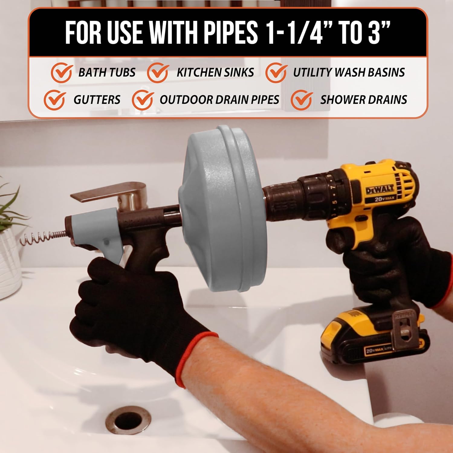 - Unser 15 m langer Ablaufbohrer ist ein grossartiges Haushaltswerkzeug, um schnell jeden Abfluss zu entfernen, einschliesslich Küchen- und Badezimmerspülen, Badewannen, Duschen und Abflussrohren. Sparen Sie sich eine grosse Klempnerrechnung, indem Sie