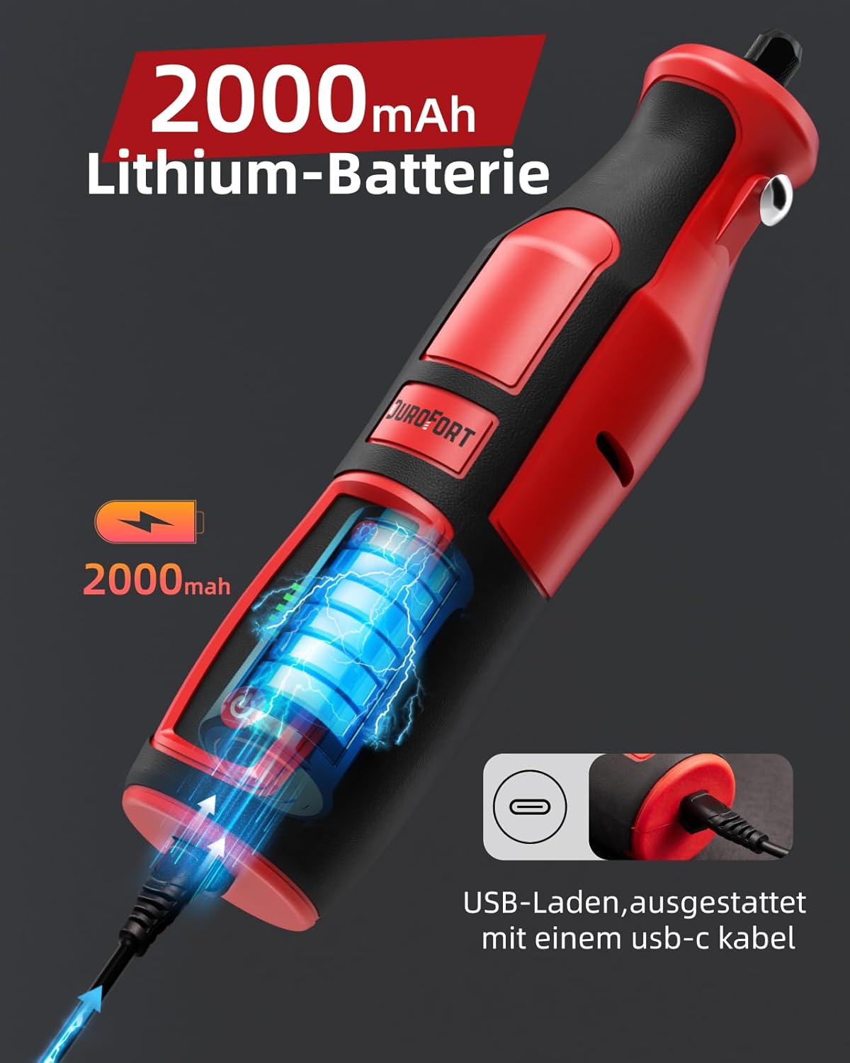 - SCHNELLES LADEN UND AKKU MIT HOHER KAPAZITÄT:: Der DuroFort Graviergerät, ist mit einem 2.000mAh Li-Ion-Akku mit Typ-C-Ladeanschluss für schnelles Laden ausgestattet. Das mitgelieferte USB-C-Kabel sorgt für problemloses Aufladen und längere Nutzung.