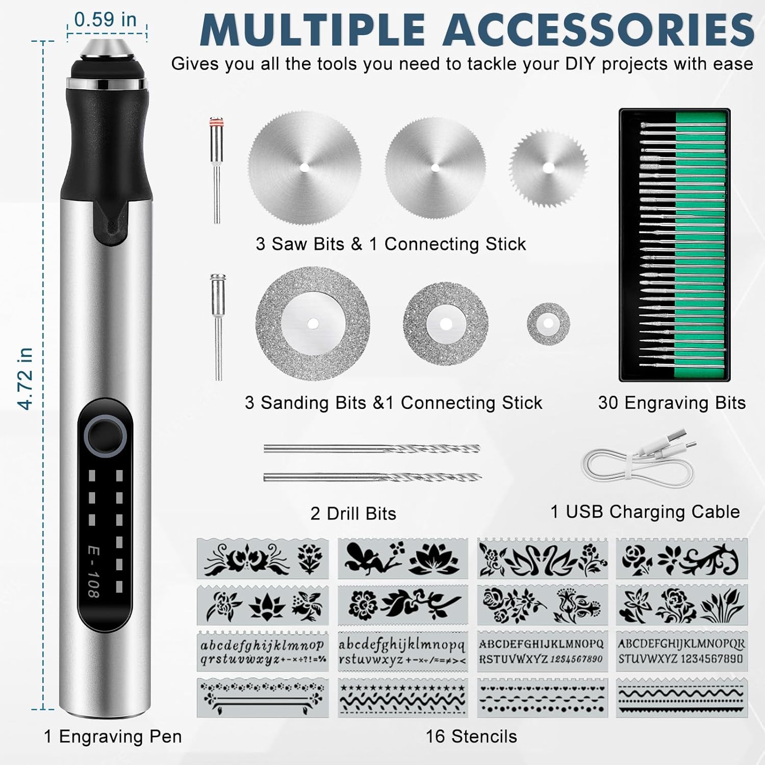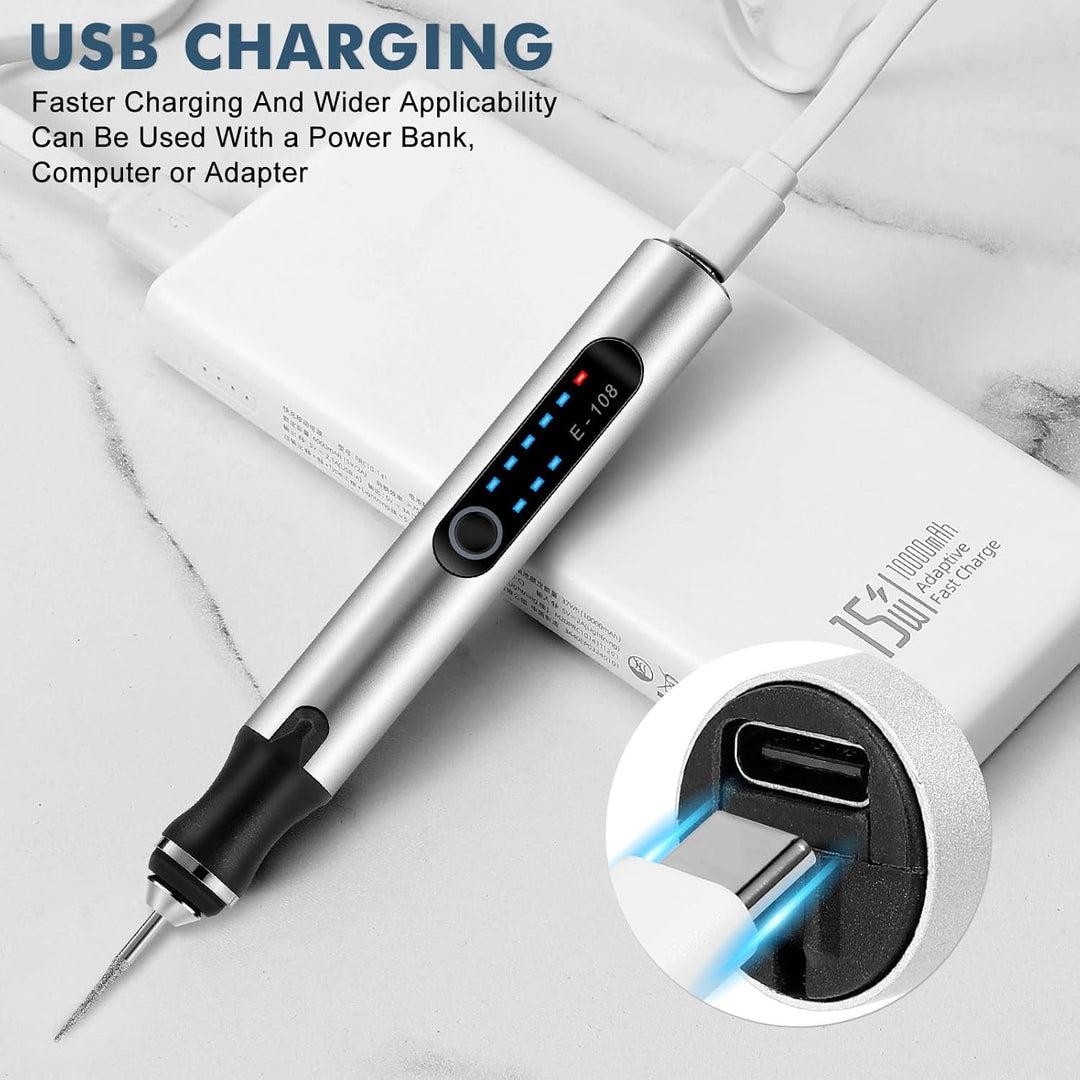 - 【USB Wiederaufladbares】 Unser gravierstift ist über die USB schnittstelle wiederaufladbar. mit elektrische Menge, Geschwindigkeits- und Überlastungsanzeige, Sie können die Anwendungssituation des Gravierstifts in Echtzeit kennen.