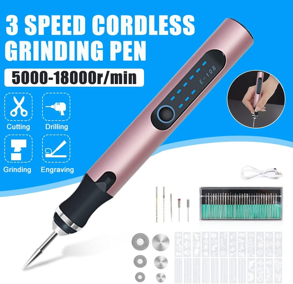- [USB Wireless Gravierer Gravurwerkzeug] Dieses Gravierwerkzeug ist mit einer Lithiumbatterie ausgestattet und über die USB-Schnittstelle wiederaufladbar. Die kabellose Nutzung dauert nach vollständiger Aufladung bis zu 30 Minuten im Leerlauf. Einfach,
