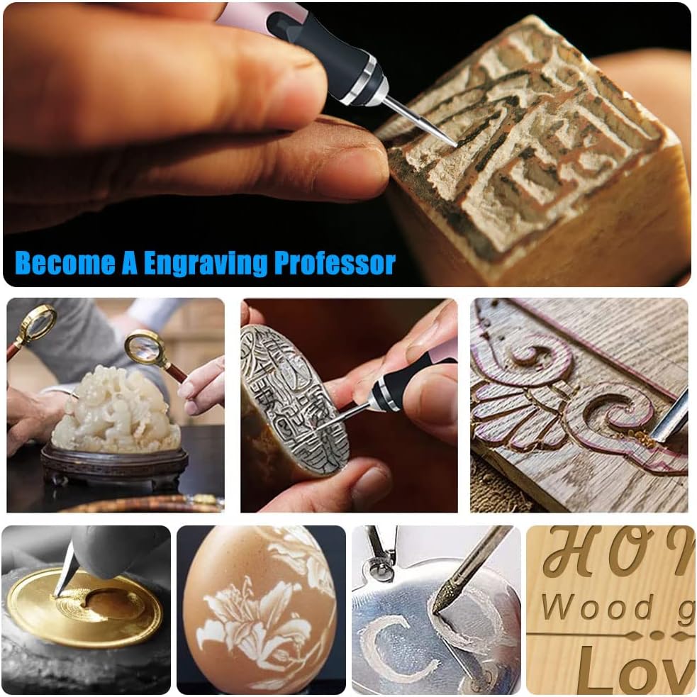 - [Multifunktionales Holzgravur-Kit] Dieses Handgravur-Kit kann als elektrische Graviermaschine oder als kleines rotierendes Werkzeug verwendet werden, mit dem Sie fast jede Oberfläche in Sekundenschnelle personalisieren oder dekorieren können, wie