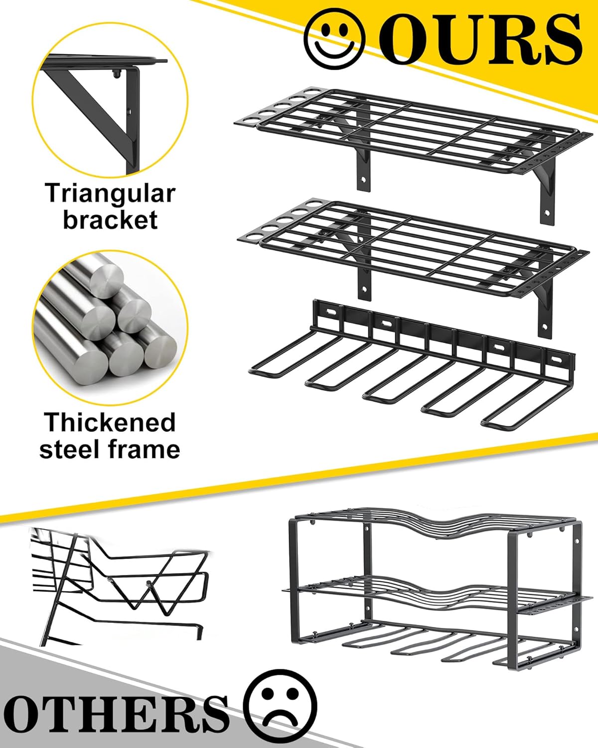 - 【Perfekt für Elektrowerkzeuge】 Dreilagige Garagenorganisierung, es ist mehr als ein idealer Bohrer-Organizer. Es gibt 28 Löcher für Schraubendreher Halter und Zangen Lagerung und zwei flache Regale, um andere Elektrowerkzeuge zu platzieren. Ein