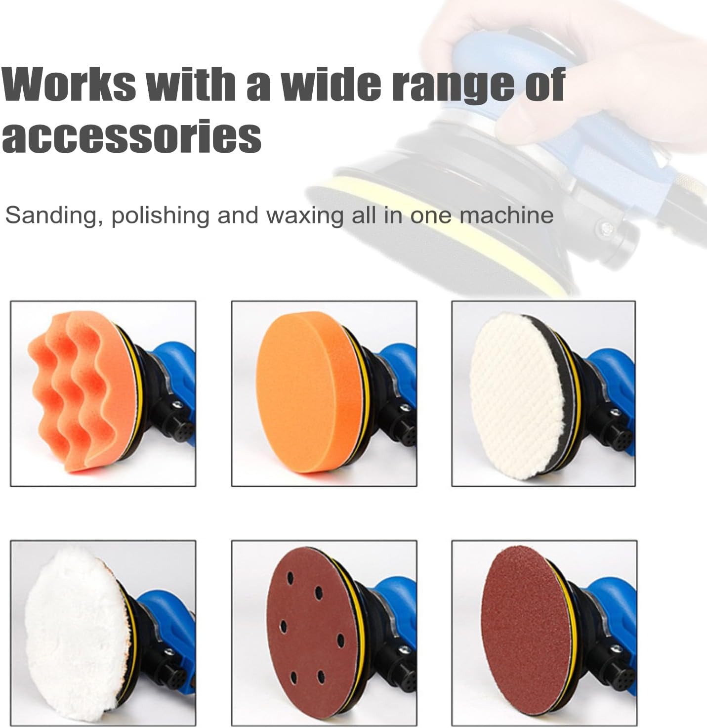 - Pneumatischer Schleifer mit "Hoop and Loop" - Pad, der sich zum einfachen Auswechseln von Schleifpapier oder Polierschwamm.