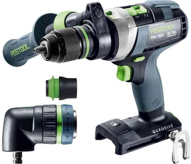 - Lieferumfang: Festool Akku-Schlagbohrschrauber TPC 18/4 I-Basic-Set QUADRIVE, CENTROTEC Werkzeugfutter, CENTROTEC Magnet-Bithalter BH 60 CE-Imp, FastFix Schnellspannbohrfutter 13 mm KC 13-1/2-MMFP, Zusatzhandgriff, FastFix Winkelvorsatz, Bitkassette BKS