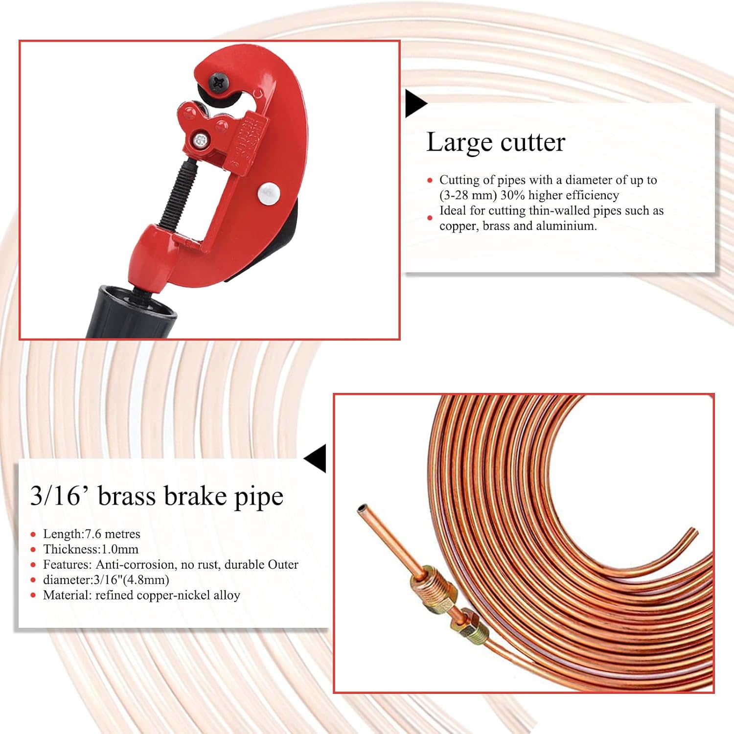 - Zubehör: Erfüllt Ihre Reparaturanforderungen, das Bremsleitungszubehör-Kit ist ein nützliches Zubehör für die Bremsleitung, einschliesslich Bremsleitungen, Zubehör und Bördelwerkzeuge.