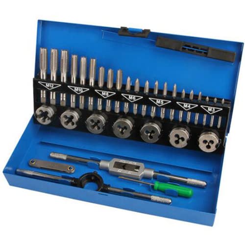 - Gewindeschneider Set - Enthält 21 x Gewindebohrer (M3-M12), 7 x Rundstempel, 1 x Matrizenhalter, 1x Windeisen, 1 x Gewindefüihlerlehre,1 x Schraubendreher.