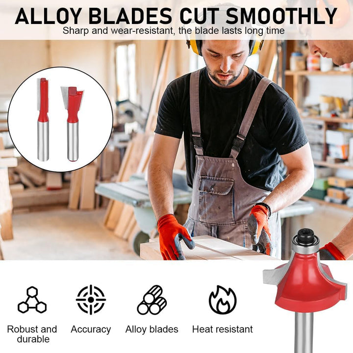 - 🔧【 15 VERSCHIEDENE ROUTERBITS ITS】 : 15 ROUTER-BITS: STRAIGHT BIT 3MM /COVE BOX BIT R-6MM /ROMAN OGEE R4MM /COVE BOX BIT R3MM /COVE BIT R6.3MM /"V" -TYPE SLOTTING CUTTER 12.7 MM /45 ° CHAMFER 12.7 MM /TRAIGHT BIT 6MM /MORTISING BIT 12.7MM /CORNER