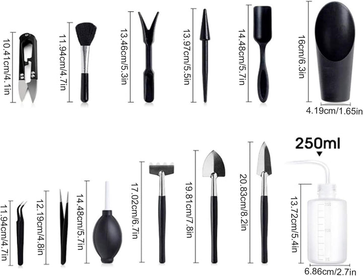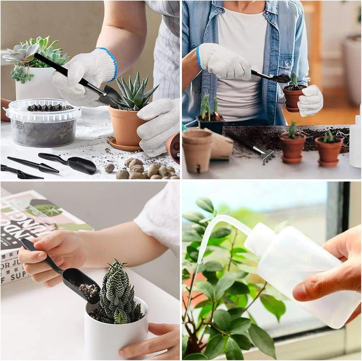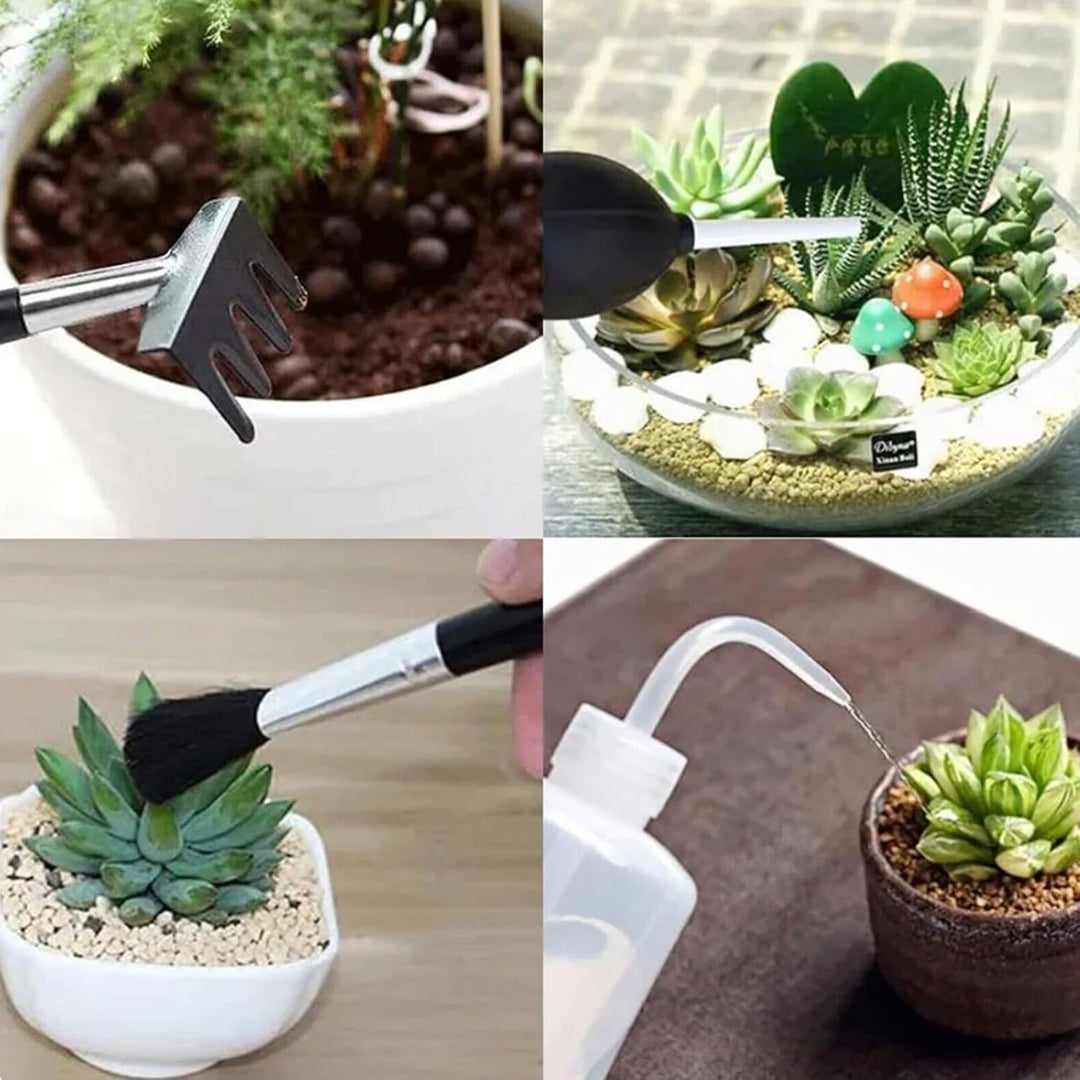 - đ”ăWesentlich Mini GartengerĂ€te SetăSukkulenten Garten Werkzeug Set eignet sich zum Graben, JĂ€ten, Lockern des Bodens, Umpflanzen, BewĂ€ssern, Reinigen, Beschneiden, Hydroponik-Pflanzen, etc., geeignet fĂŒr Sukkulenten, Bonsai-Pflanzen und kleine