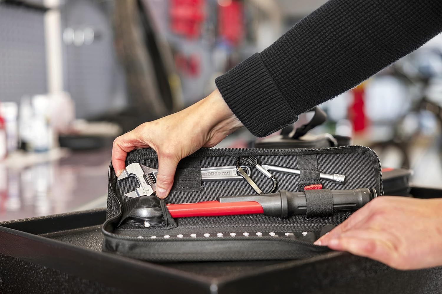 - PRAKTISCHE HANDHABUNG: Neben einem Drehmoment- und Rollgabelschlüssel, Adaptern und Bits enthält das Bike-Set u. a. eine Verlängerung, sodass auch an schwer erreichbaren Stellen geschraubt werden kann.