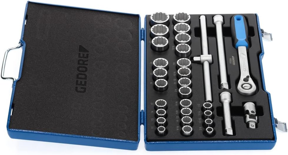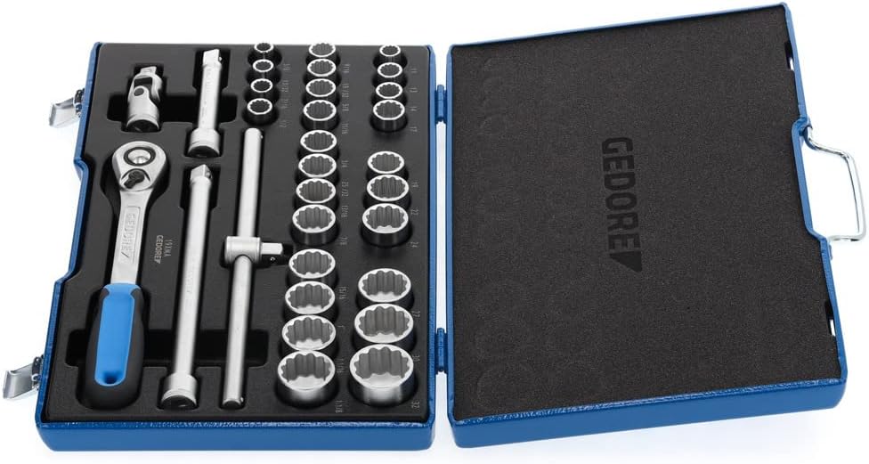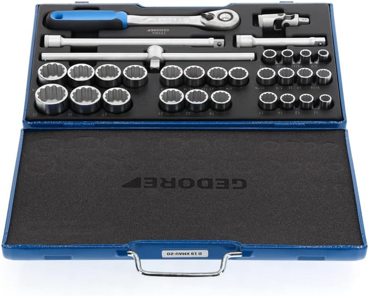 - LIEFERUMFANG: 1 x GEDORE Steckschlüssel-Satz 1/2", 31 teilig, Länge: 277 mm, Gewicht: 6600 g, Artikelnummer: D 19 XMAU-20