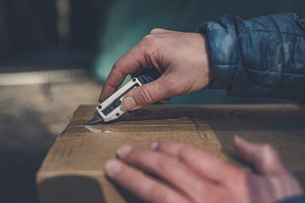 - Universalklinge zum einfachen Austauschen, Klinge vollständig einziehbar, Rutschsperre für mehr Sicherheit, G10-Griffschalen für festen Halt