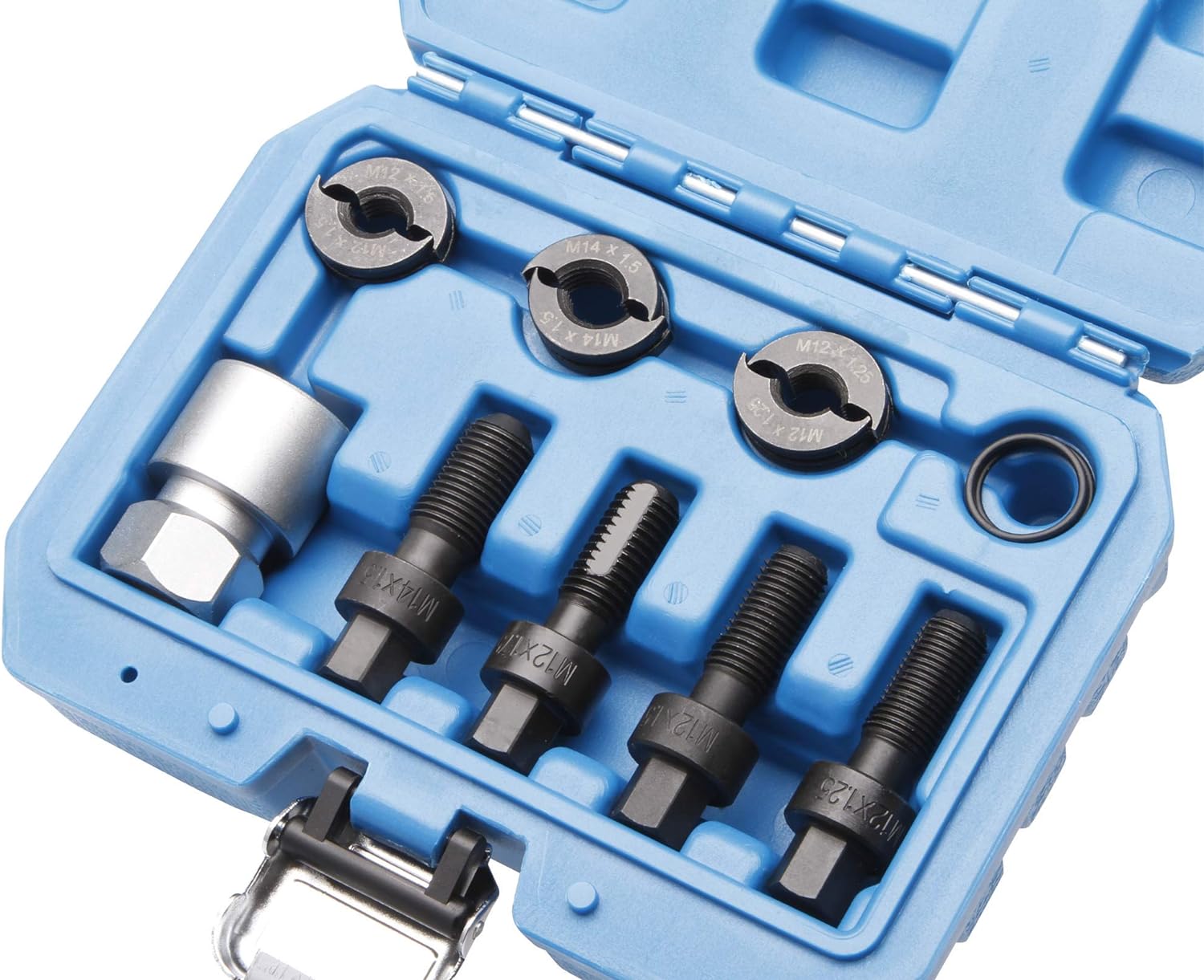 PRODUKTBESCHREIBUNGEN   Gewinde Nachschneide Satz  Radbolzen und Radschrauben  Gewindeschneider:  M12 x 1,25 - M12 x 1,5 - M14 x 1,5  Gewindebohrer:  M12 x 1,25 - M12 x 1,5 - M12 x 1,75 - M14 x 1,5 mm  Adapter für Gewindeschneider