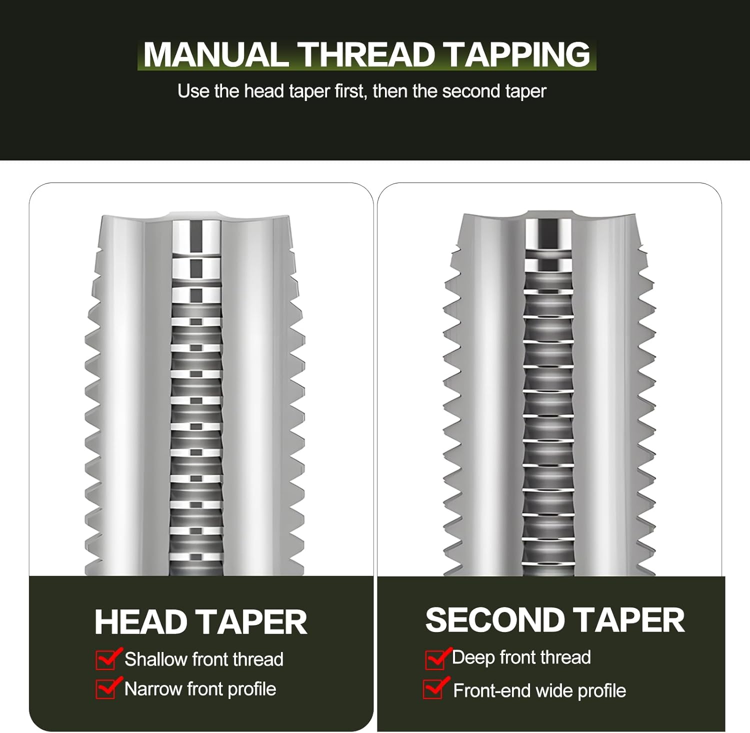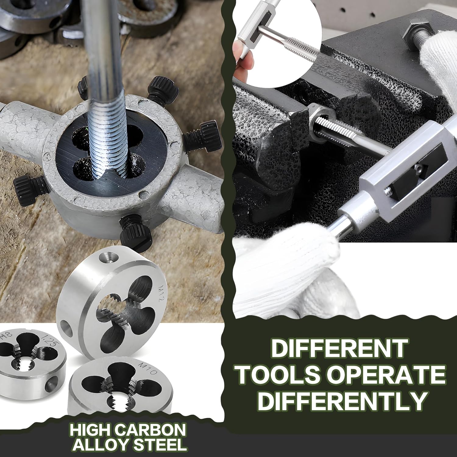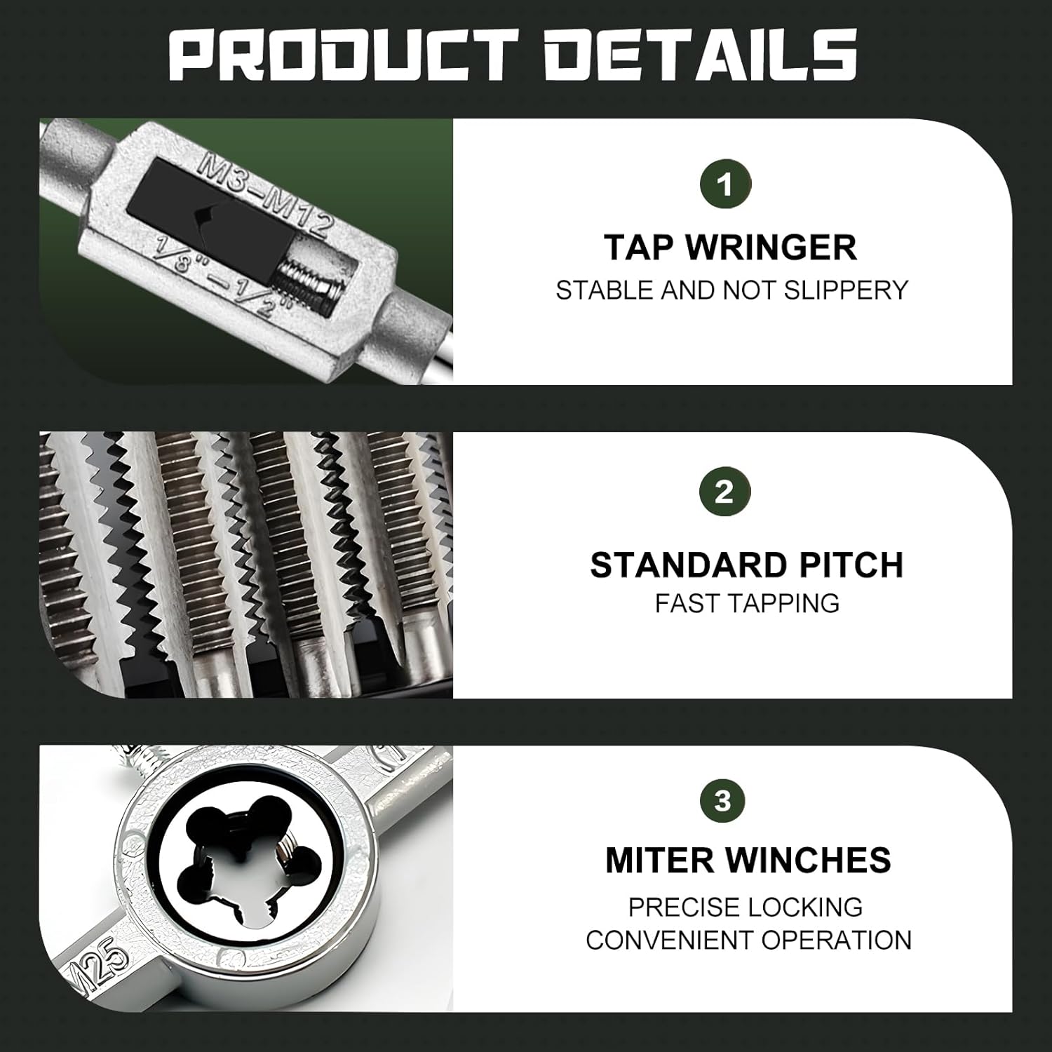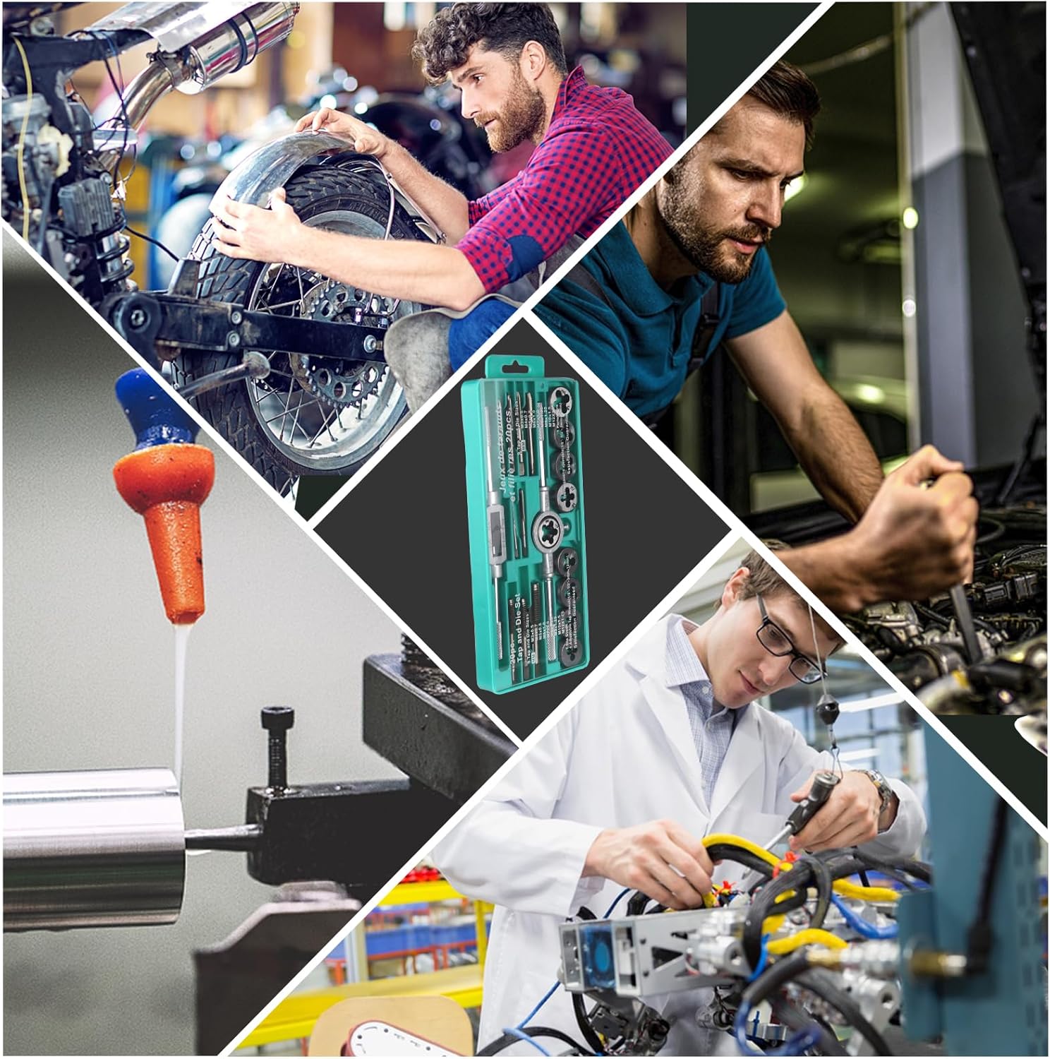 - Breite Anwendung -- Das Gewindeschneider und Werkzeuge ist nicht nur für Werkstatt und Industrie geeignet, sondern kann auch in verschiedenen Szenarien wie Heimwerker-Reparaturen, mechanische Reparaturen und Teileverarbeitung verwendet werden. Tap And
