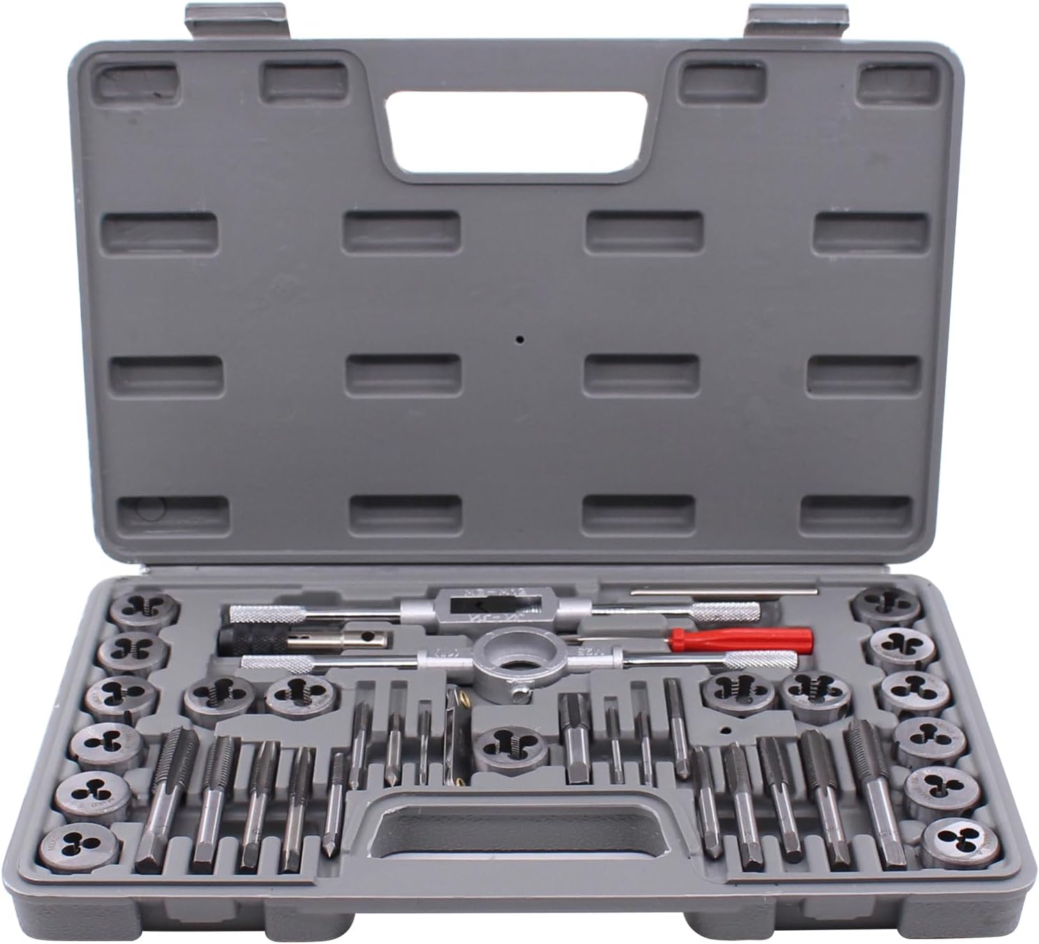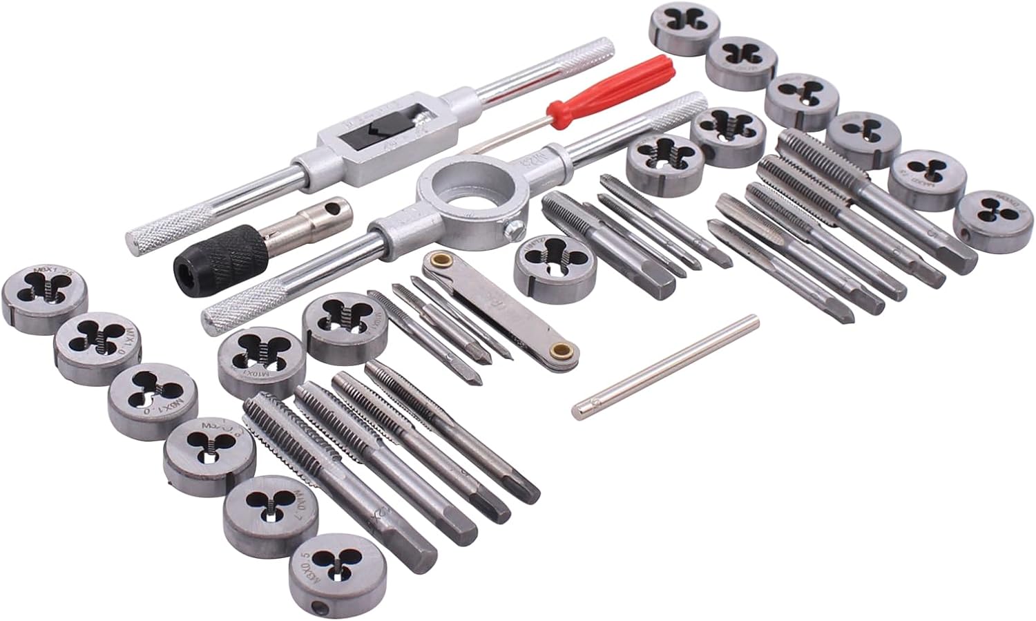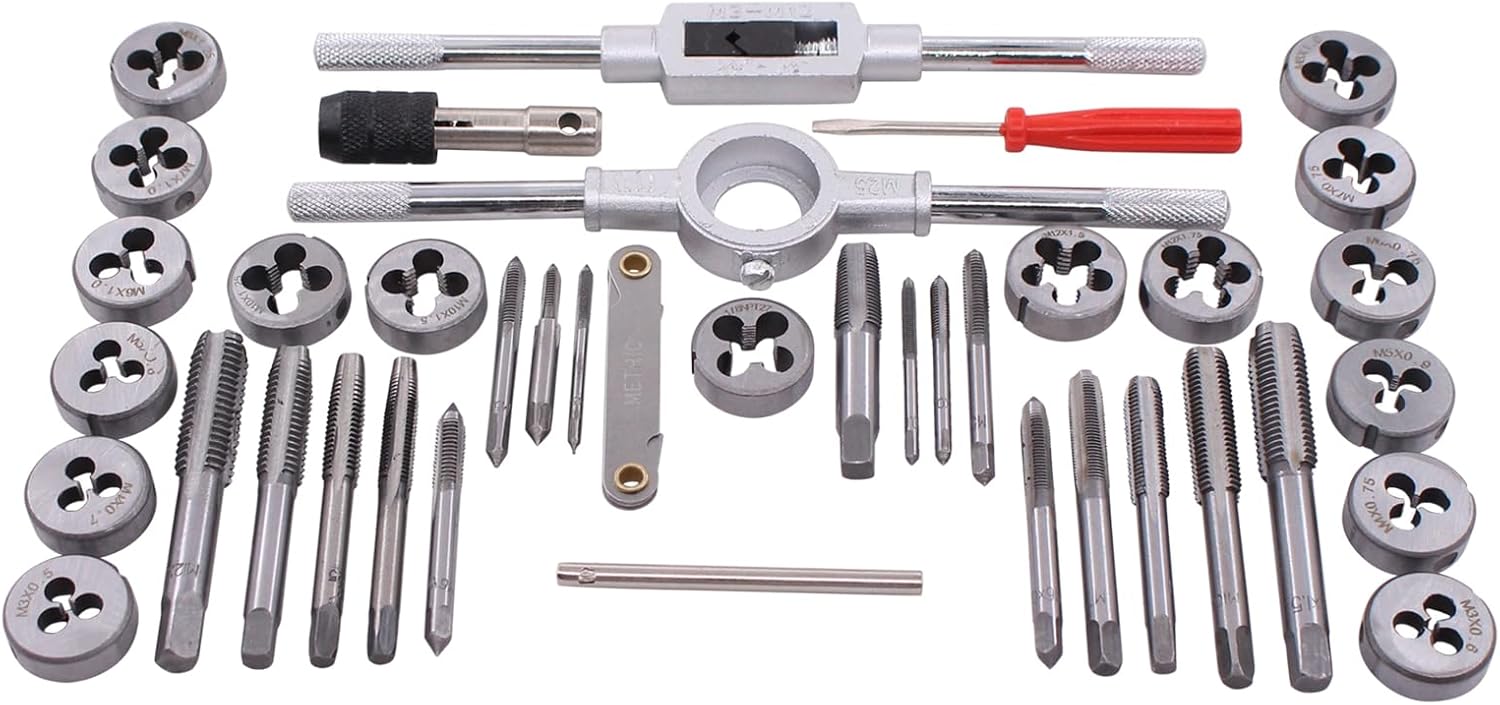 - Lieferumfang : 1 x Windeisen für Gewindebohrer M3-M12; 1 x Schneideisenhalter für Schneidplatten M25; 1 x Werkzeughalter M3-M5; 1 x Gleitgriff; 1 x Schlitzschraubendreher; 1 x Gewindelehre 12 Blatt; 17 x Gewindebohrer je 1x (M12x1,5, M12x1,75,