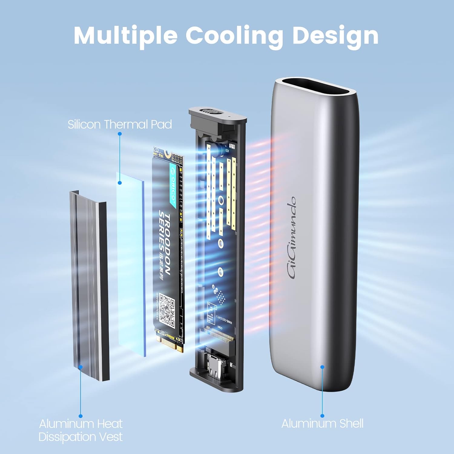 - 【Hochgeschwindigkeitsübertragung mit 10 Gbit/s】 Dieses GiGimundo M.2 SSD Gehäuse übernimmt das NVMe-Protokoll mit UASP. Mit der USB3.1 GEN2 Typ-C-Ausgangsschnittstelle unterstützt es eine Geschwindigkeitsübertragung von bis zu 1000-1200 MB/s. 1G