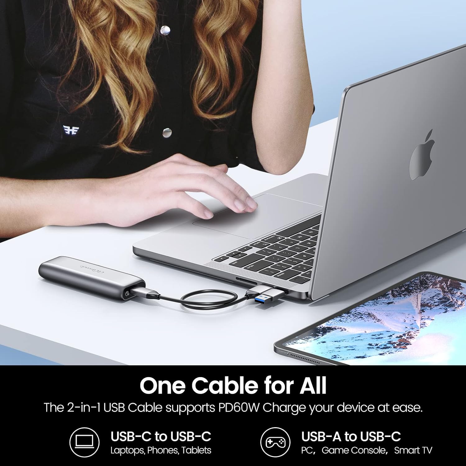 - 【Breite Kompatibilität / PD60W 2-in-1-Kabel】 Dieses M.2-Gehäuse wird mit einem 2-in-1-Kabel (C zu C/A) geliefert und unterstützt 10 Gbit/s Datenübertragung. USB C-zu-C-Kabel unterstützt PD60W. Vollständig kompatibel mit Windows/Mac/Linux.etc.