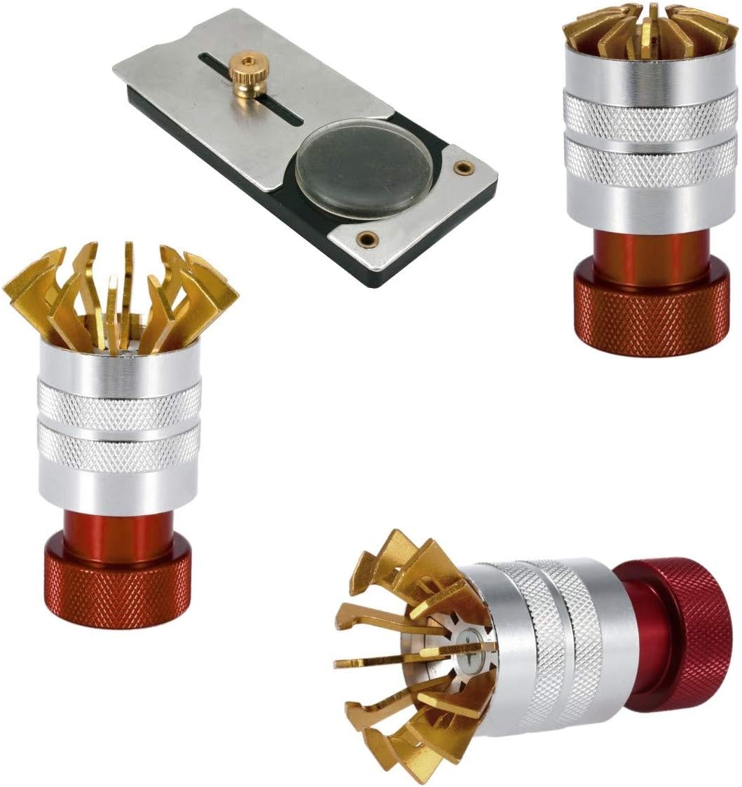 - Ein kostengünstiges und wertiges Uhrenwerkzeug, geliefert mit Grundplatte um das Uhrenglas vor dem Einsatz zu halten.