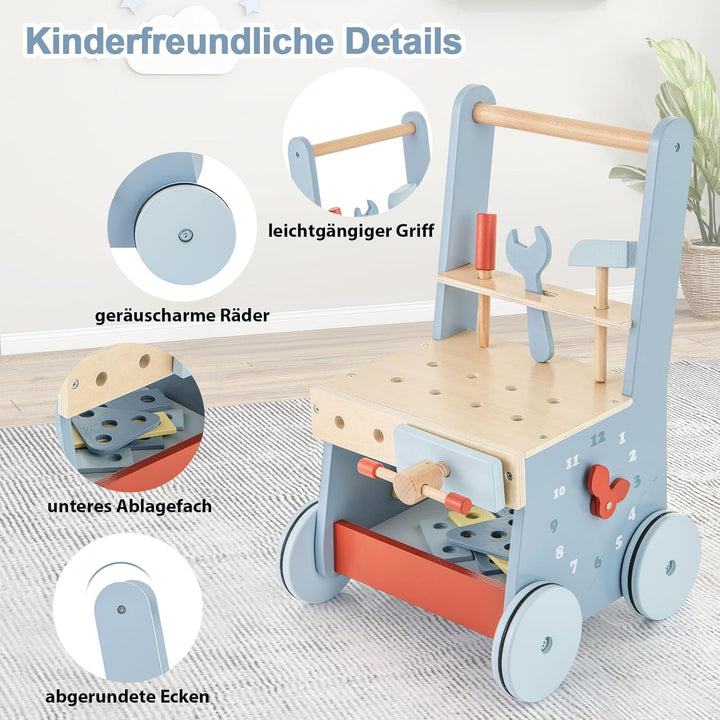 - Innovatives 2-in-1 Design: Dieser Lauflernhilfe verwandelt sich in eine bunte Werkzeugarbeitsbank für Kinder, ausgestattet mit kleinen Werkzeugen wie Schraubendreher und Hammer. Perfekt für Kleinkinder ab 1 Jahren, um ihre Gehfähigkeiten zu verbessern