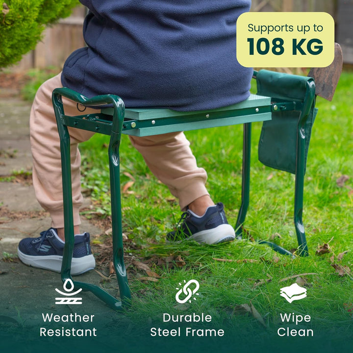 - Dieser robuste Gartenhocker ist multifunktional und eignet sich sowohl für Garten- als auch für Nicht-Gartenabenteuer. Das EVA-Schaumpolster bietet Komfort, sodass Sie es bei Bedarf als Sitzkissen verwenden können, was diese Kniebank für die