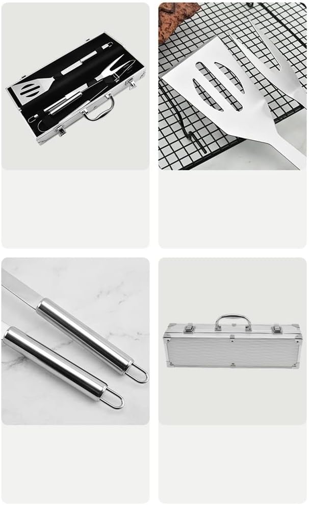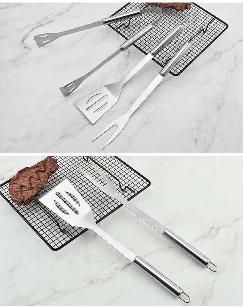 - HOCHWERTIGES GRILLBESTECK - Die Grillbesteck sind aus Edelstahl. Hochwertiges dickes Metall und eine solide Konstruktionohne kann Verformung oder Bruch einer schweren Presse standhalten.Das Grillbesteck ist von premium Qualität, hält dadurch ewig und