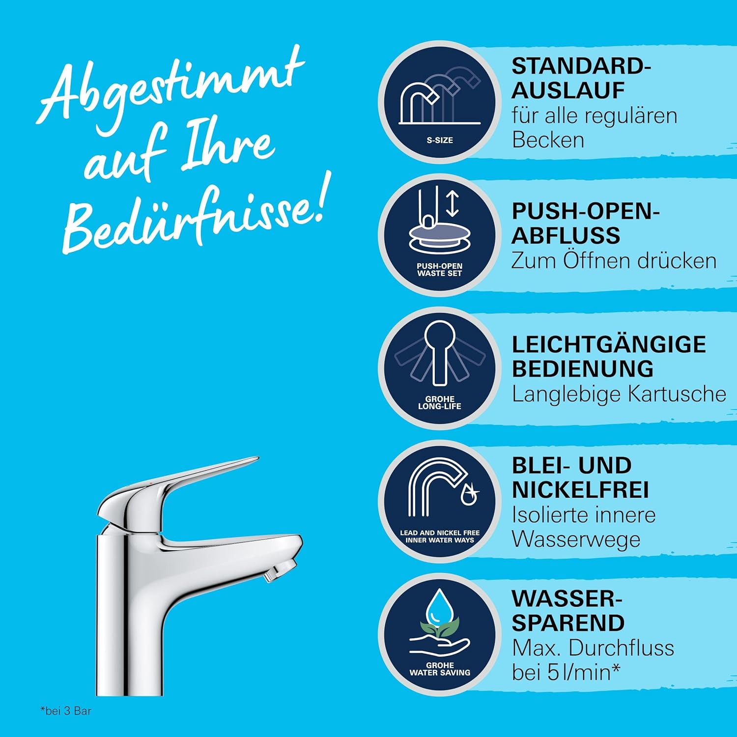 - GROHE EcoJoy mit Wassersparfunktion für einen geringen Verbrauch