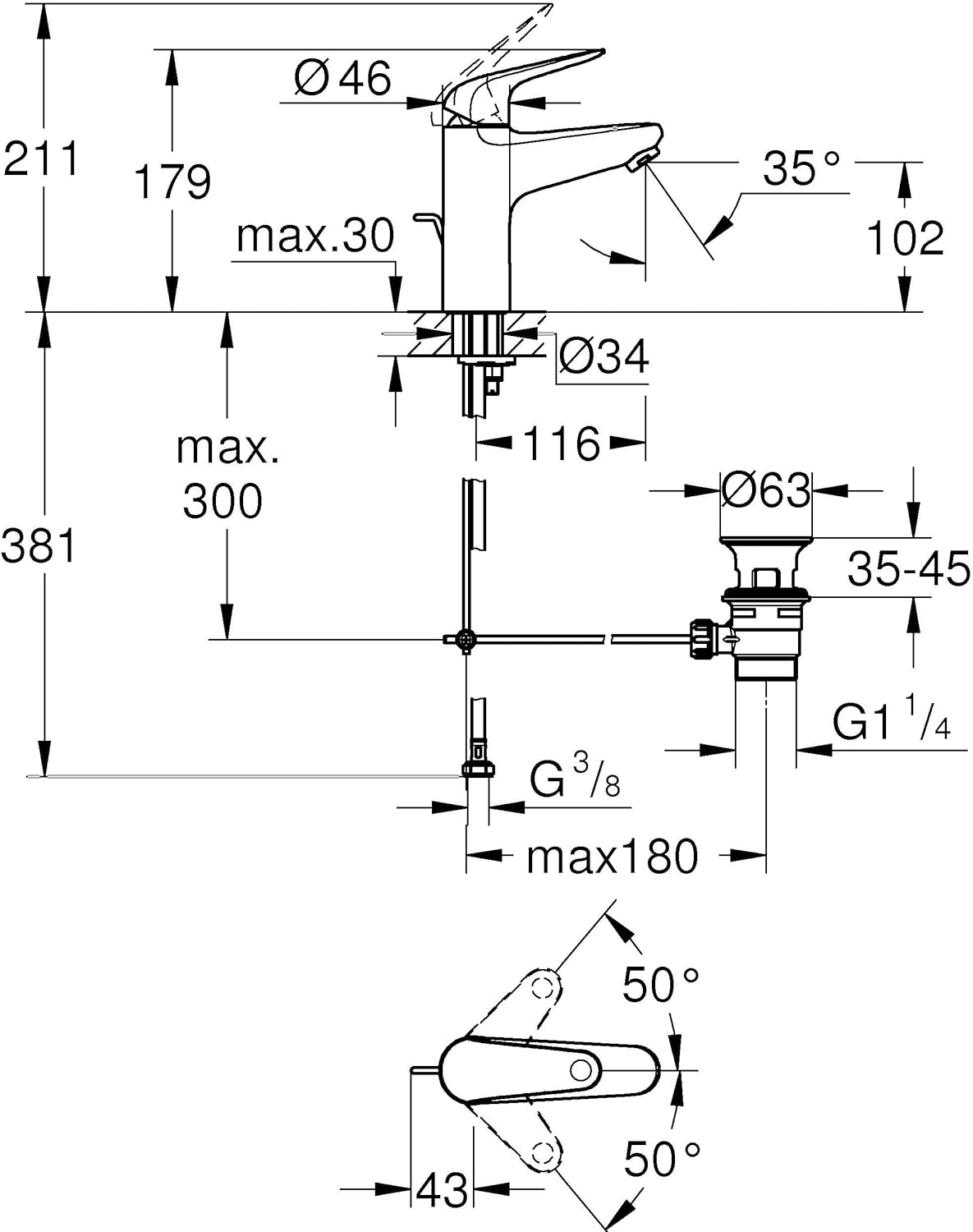 - Lieferumfang: Armatur, Montagewerkzeug, Ablaufgarnitur, Montageanleitung, Pflegeanleitung, Bedienungsanleitung