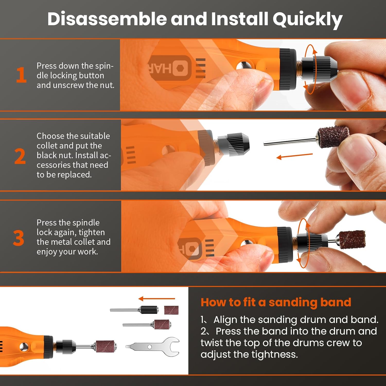 - 【Kompakt und Praktisch】 Dieses Rotationswerkzeug ist leistungsstark und dennoch klein und leicht (wiegt nur 0,14 kg) und bietet Ihnen ultimative Kontrolle und Präzision sowie Komfort, als würden Sie einen Stift halten. Und es wird mit einem