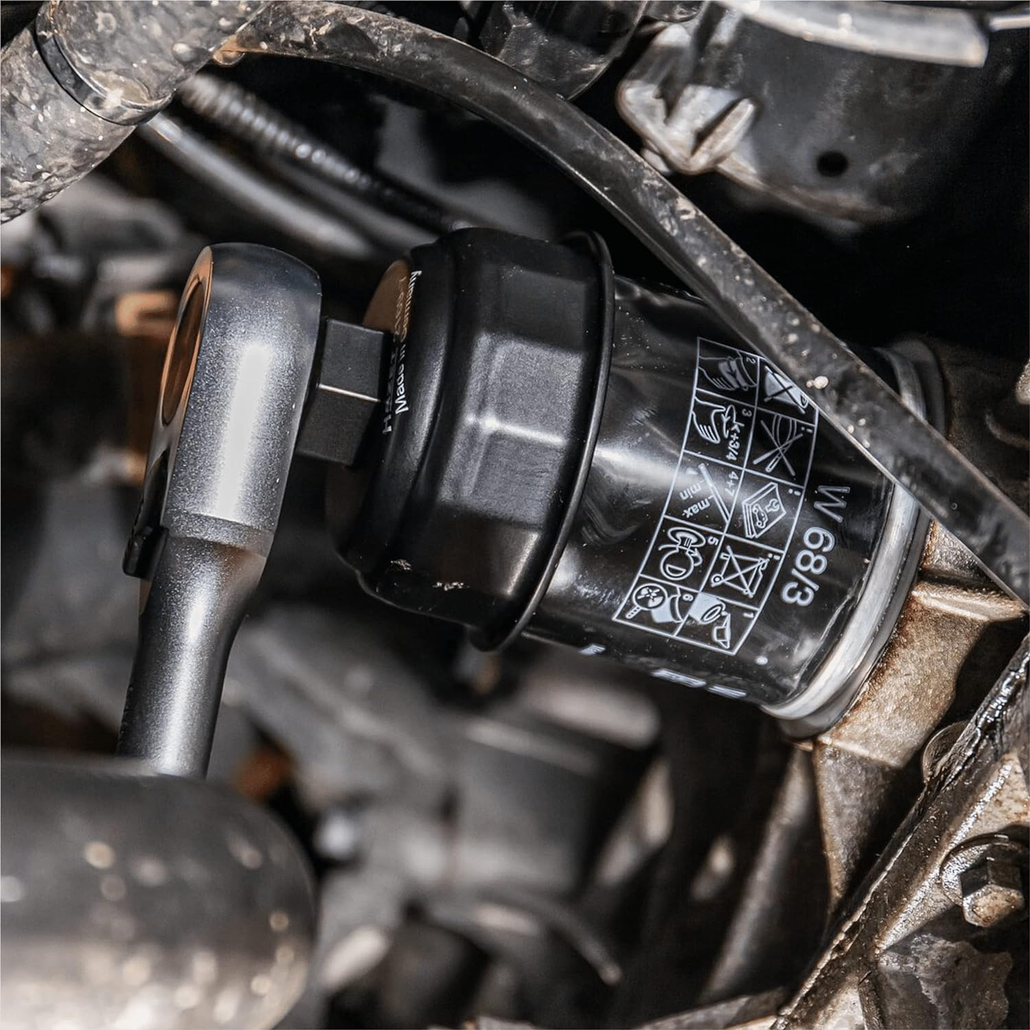 - HOCHWERTIG: Der Ölfilter-Schlüssel überzeugt durch den 12,5 mm Vierkant Antrieb bzw. Aussensechskant 24 mm und Aussen-14-kant Abtrieb, dadurch lassen sich Ölfilter-Kappen oder Deckel problemlos abnehmen