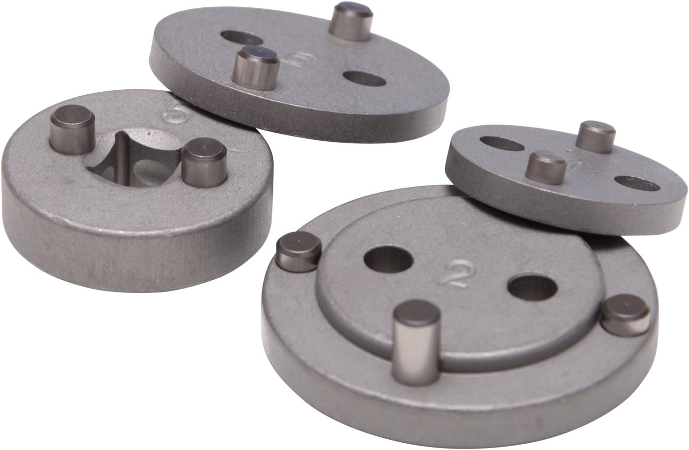 - ✽ Bei diesem Bremskolbenrückstellsatz sind die Adapterplatten teilweise mit Stahlstiften versehen, dadurch ist eine lange Lebensdauer gewährleistet.