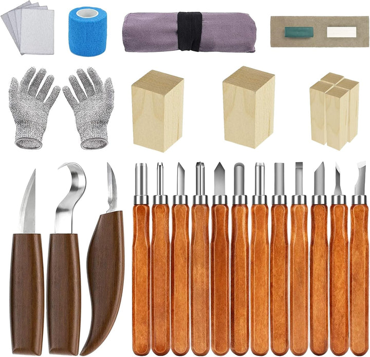 - ✅[32 in 1 Schnitzset] Dieses Schnitzset enthält 3*Schnitzmesser (grobe Schnitzerei), 12*Schnitzmesser (feine Schnitzerei), 4*kleine Holzklötze (2,5*2,5*10cm), 2*grosse Holzklötze (5*5*10cm), 4*Schleifpapier (180/320/600/800), 1*Polierband,