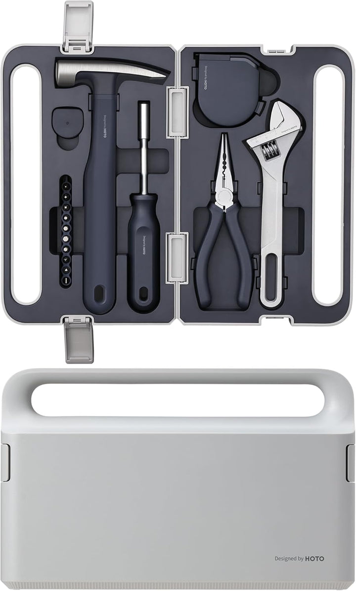- EINFACH UND EXQUISIT - HOTO möchte das traditionelle Bild von Werkzeugen als kompliziert und verwirrend verändern. HOTO Handwerkzeug-Set hat ein einfaches und innovatives Aussehen, der Werkzeugkasten hat ein integriertes Design, kompakt und ordentlich.