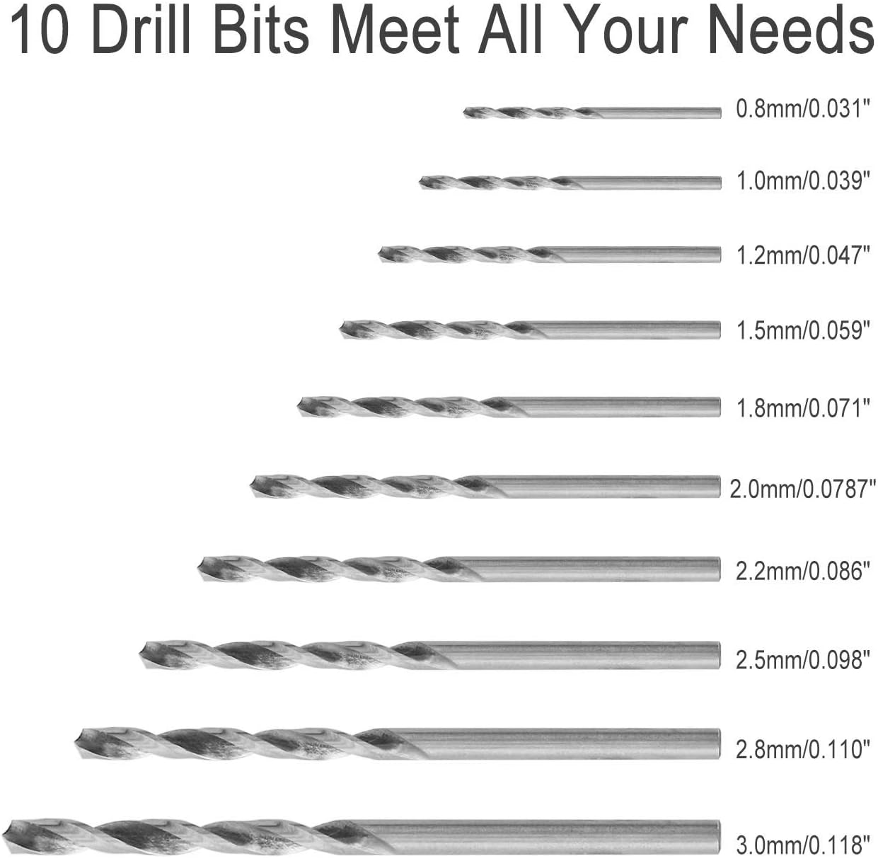 - VOLLSTÄNDIGES ZUBEHÖR: Set mit Bohrer von unterschiedlicher Grösse ((0,8-1,0-1,2-1,5-1,8-2,0-2,2-2,5-2,8-3,0 mm) , erfüllt verschiedene Anforderungen.