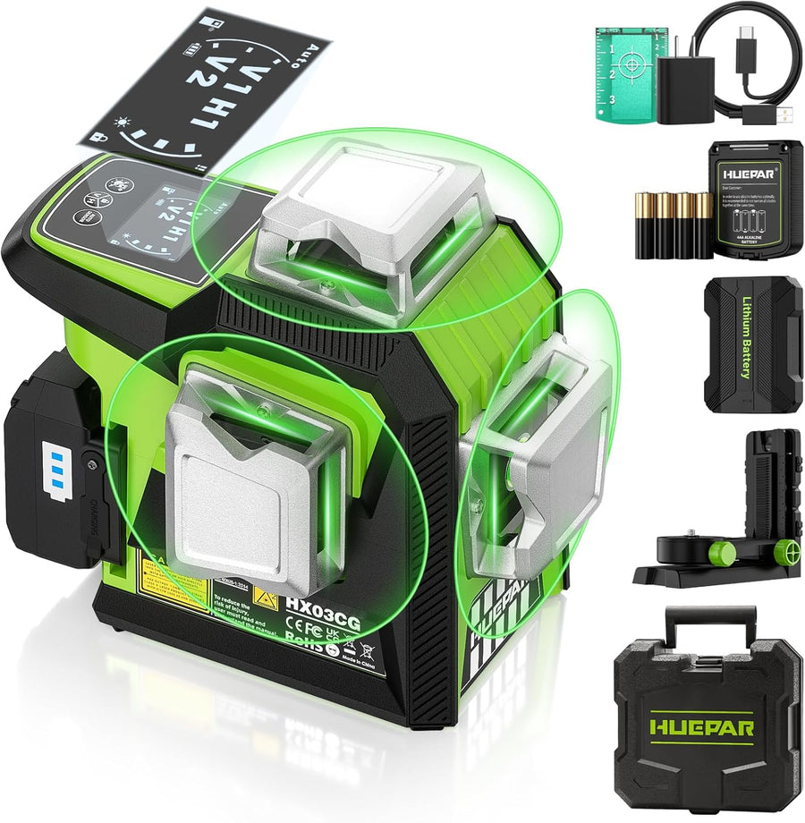- Linienhelligkeit und -genauigkeit: Der 4-mal hellere grüne LD-Laser als der rote Strahl macht ihn zu einem grossartigen Werkzeug für grosse Baustellen. Die Sichtbarkeitsanpassungsfunktion ermöglicht es Benutzern, die Linienhelligkeit bei