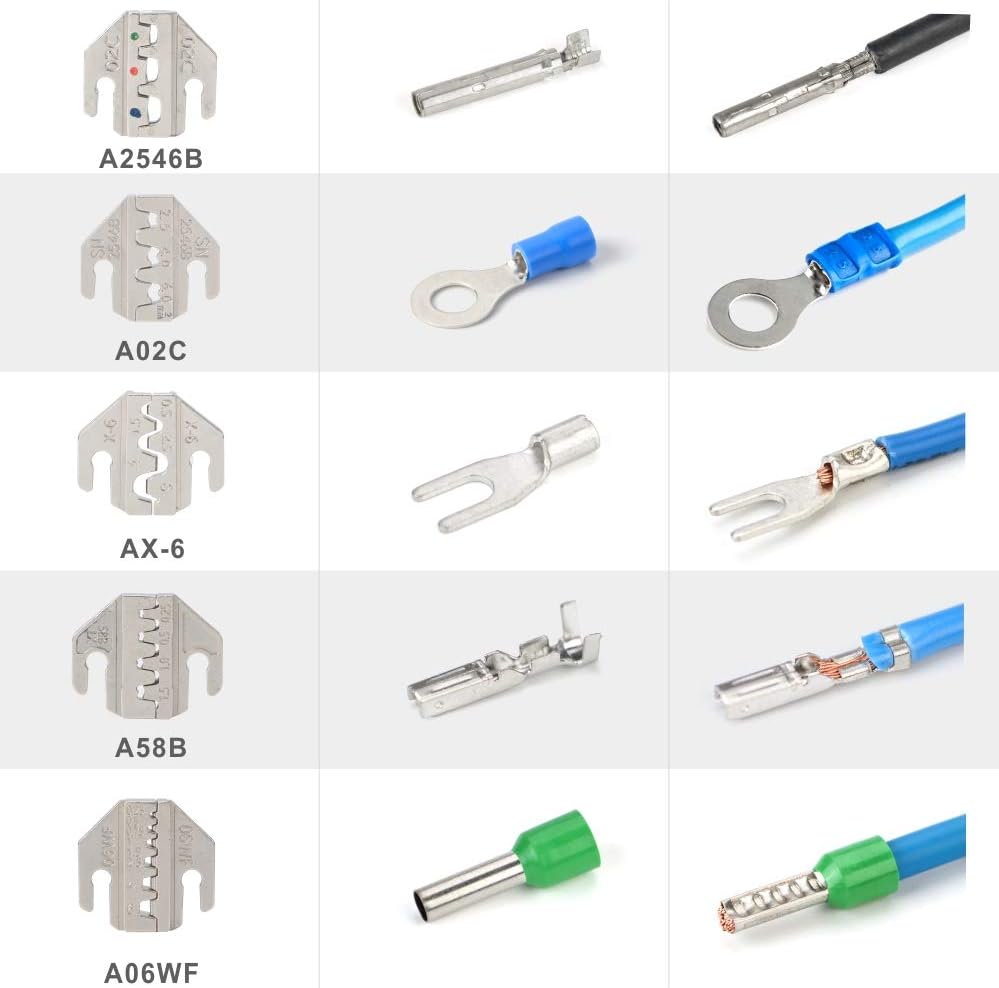 - 【5-TEILIGES STANZFORMEN-SET】SN-PM Draht-Crimpzange, Werkzeug-Set enthält 5 schnell wechselnde Stanzformen, funktioniert mit Schrumpfschläuchen, isolierten Nylon/Vinyl-Klemmen, offenen Zylinder/gestanzten Klemmen, Aderendhülsen, nicht isolierten