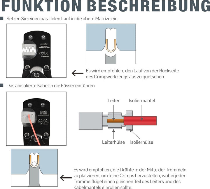 - 【HOHE PRÄZISION】Mit dem typischen parallelen Crimptyp, der Stabilität und Leistungsgleichmässigkeit bietet, ist die Quetschzange in der Lage, die Crimpdichtigkeit um 30 % zu verbessern.