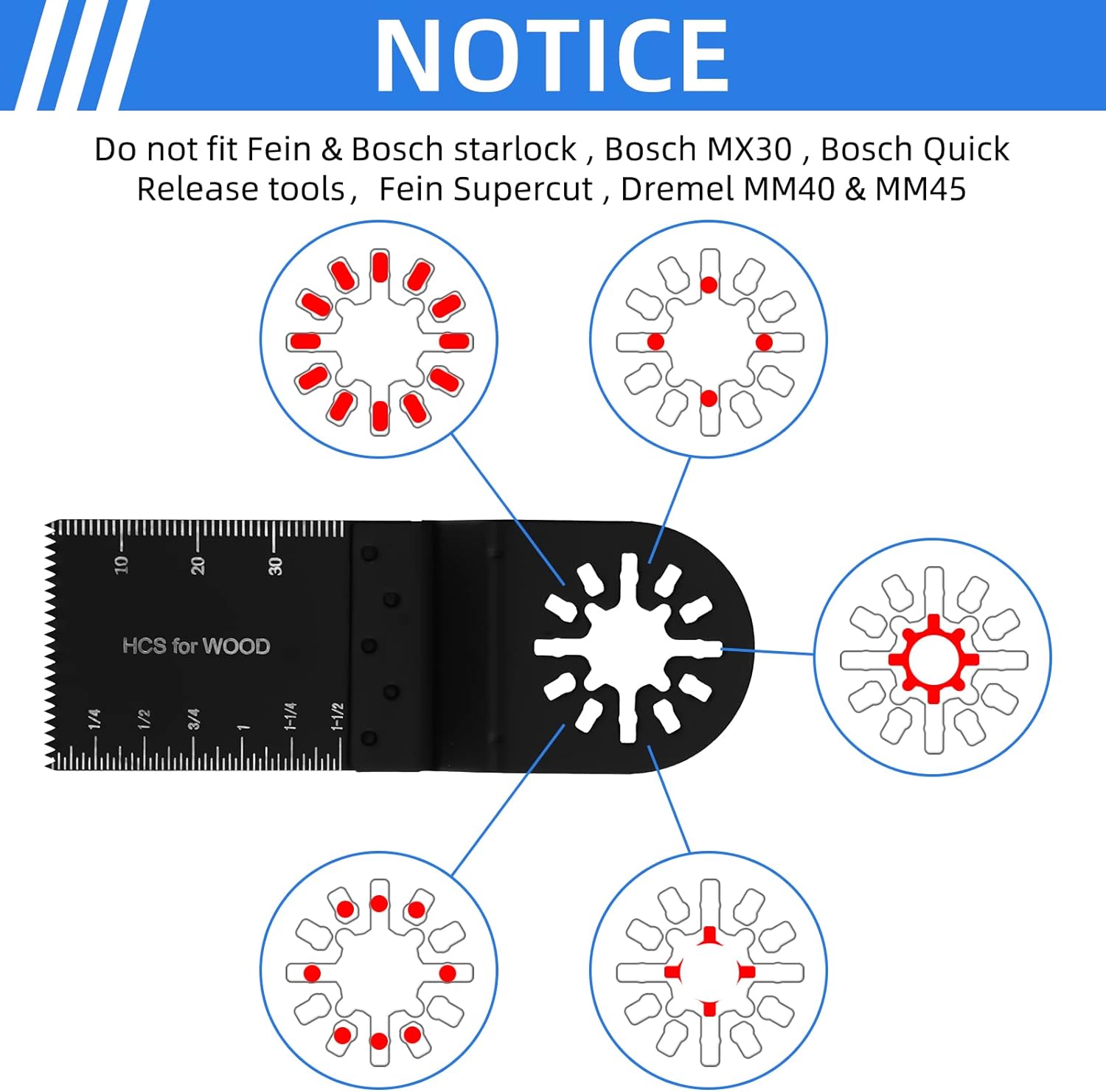 - [ACHTUNG] : Die Artikel sind nicht passend für Nicht kompatibel mit Modellen wie Bosch pmf 250, Bosch Professional Starlock,Bosch Multitool PMF 250,Bosch MX30 , Bosch & Fein Supercut & Fein Starlock (Starlock, Starlock Plus, Starlock Max).Fein