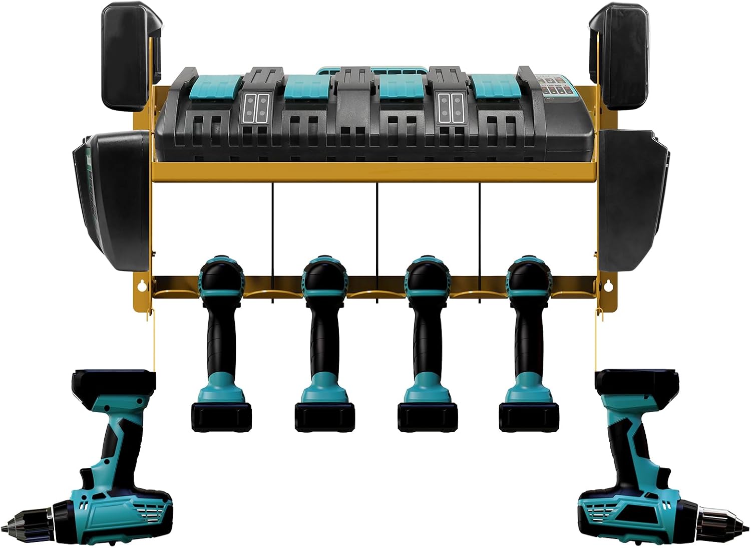 - Vielseitiger Stauraum: Dieses multifunktionale Werkzeugregal bietet ausreichend Platz für Ihre Werkzeuge und Zubehör. Der obere Bereich ist für ein Makita DC18SF Ladegerät vorgesehen, während die Seiten zwei Makita DC18RC Ladegeräte und vier