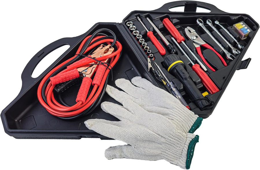 - Starthilfe. 1 x Zange 9 x Schraubnüsse (Grösse 5/6/7/8/9/10/11/12/13) 1 x Bithalter mit Griff 3 x Schraubendreher 1 x Schutzhandschuhe 3 x Ring- / Maulschlüssel (Grösse 8/10/12) 1 x Spannungsprüfer 8 x 19mm Flachsicherungen (2x10A/2x15A/2x20A/2x25A)